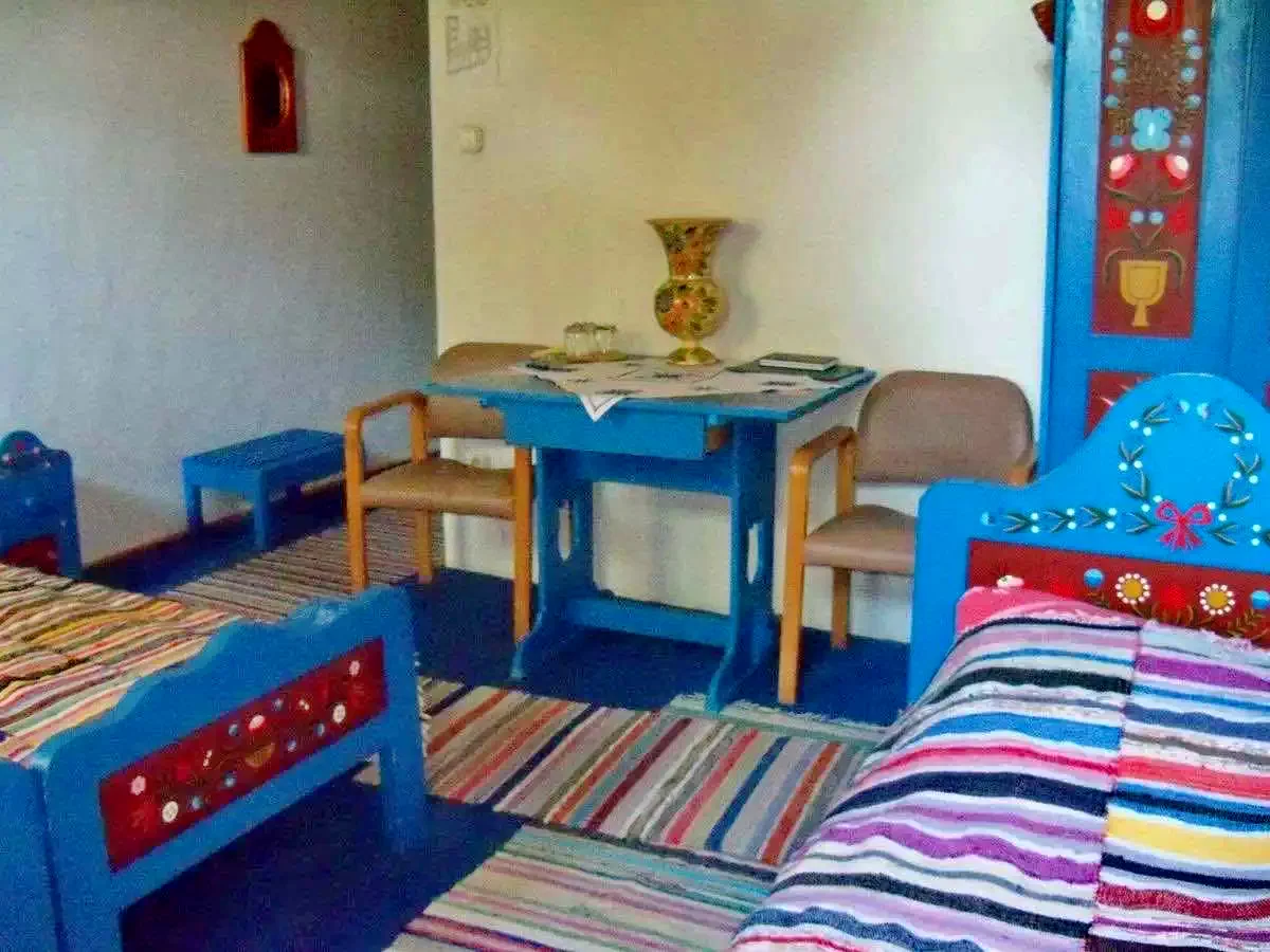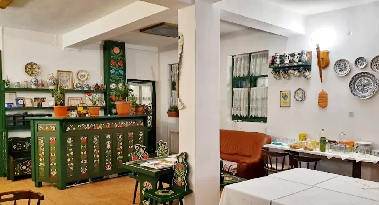 Camerele colorate, decorate cu mobilier pictat manual, și restaurantul rustic oferă o experiență unică, plină de ospitalitate.