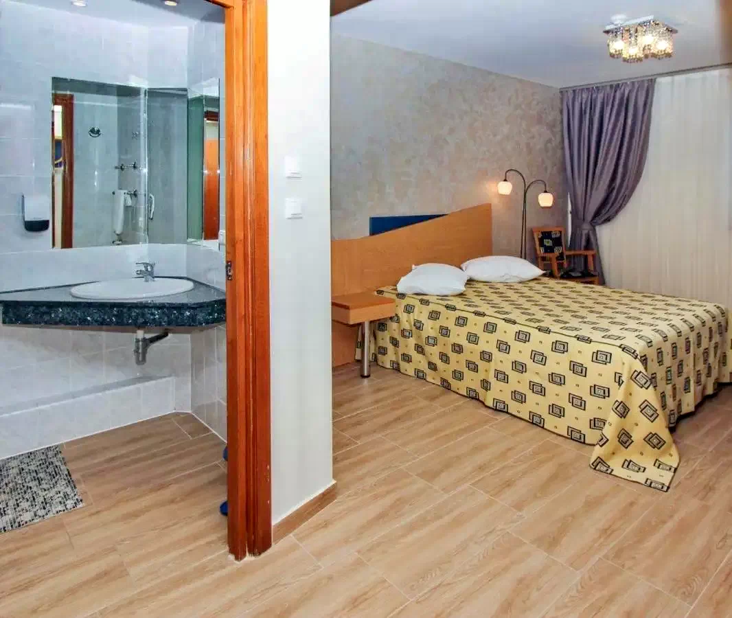 Suita (45 m²): este formata din 2 camere, fiecare cu cate un pat queen-size (160/200 cm) cu saltele confortabile