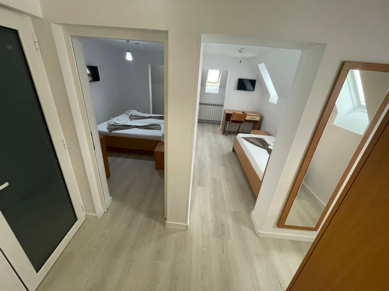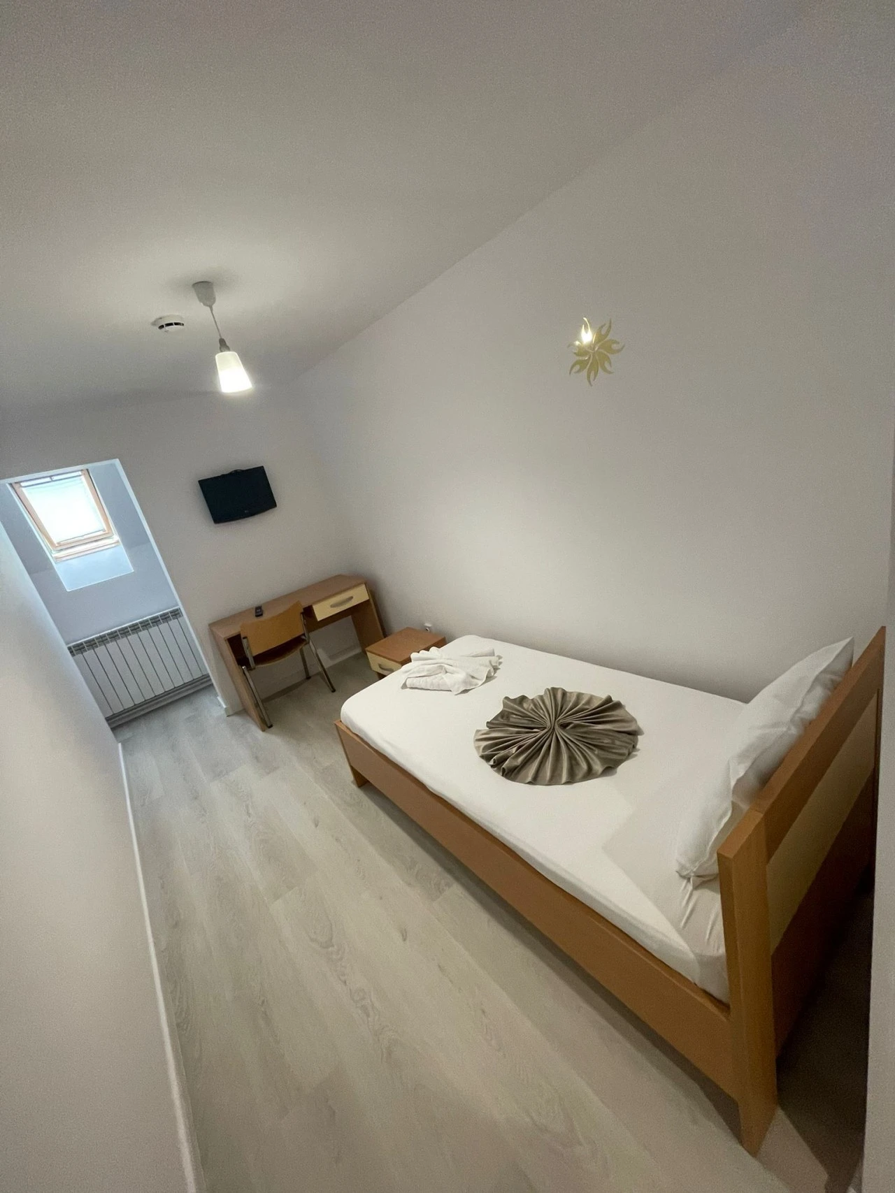 - Fiecare cameră este dotată cu televizor propriu, iar camera de familie include un pat matrimonial și cinci paturi de o persoană, oferind opțiuni flexibile de cazare.