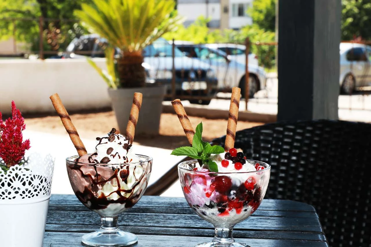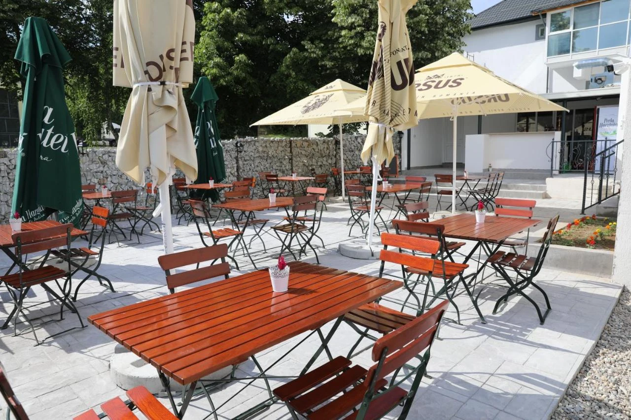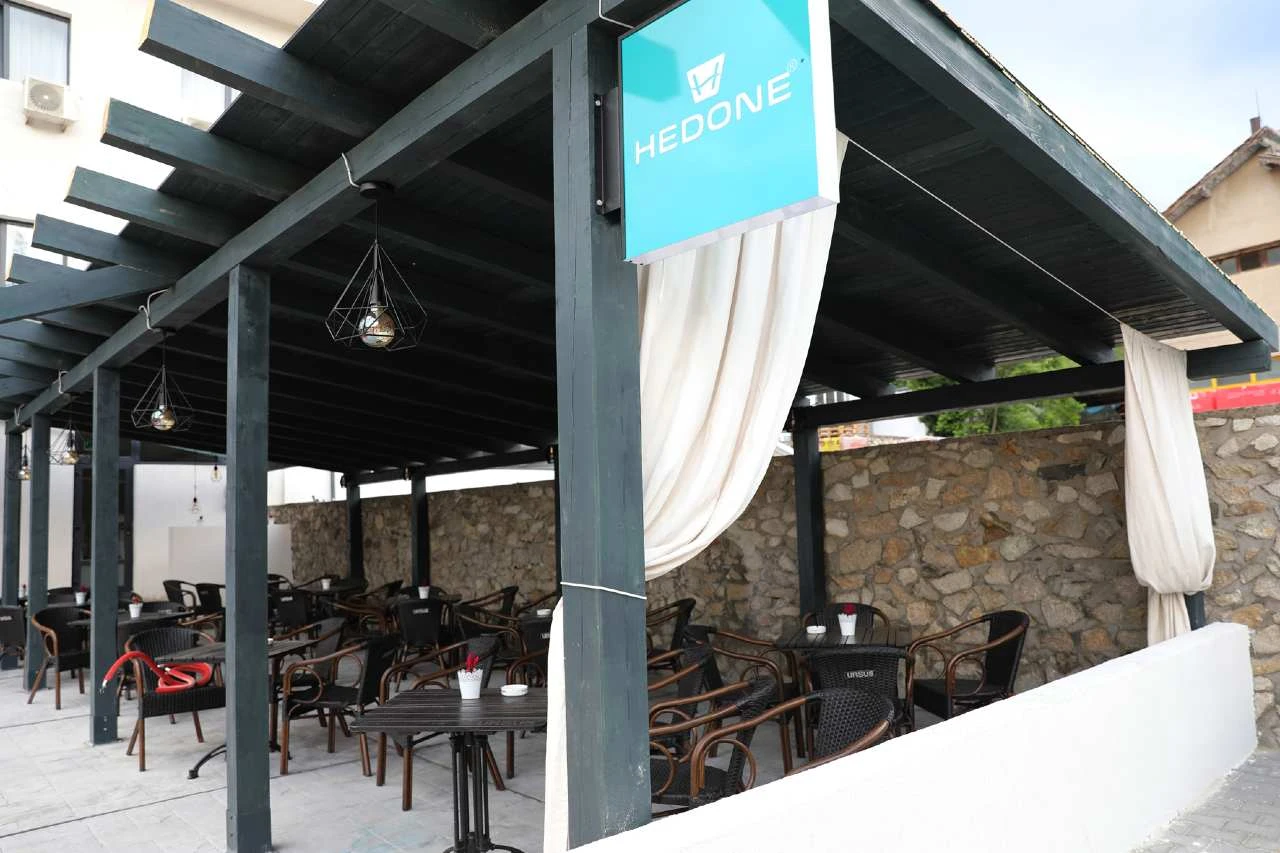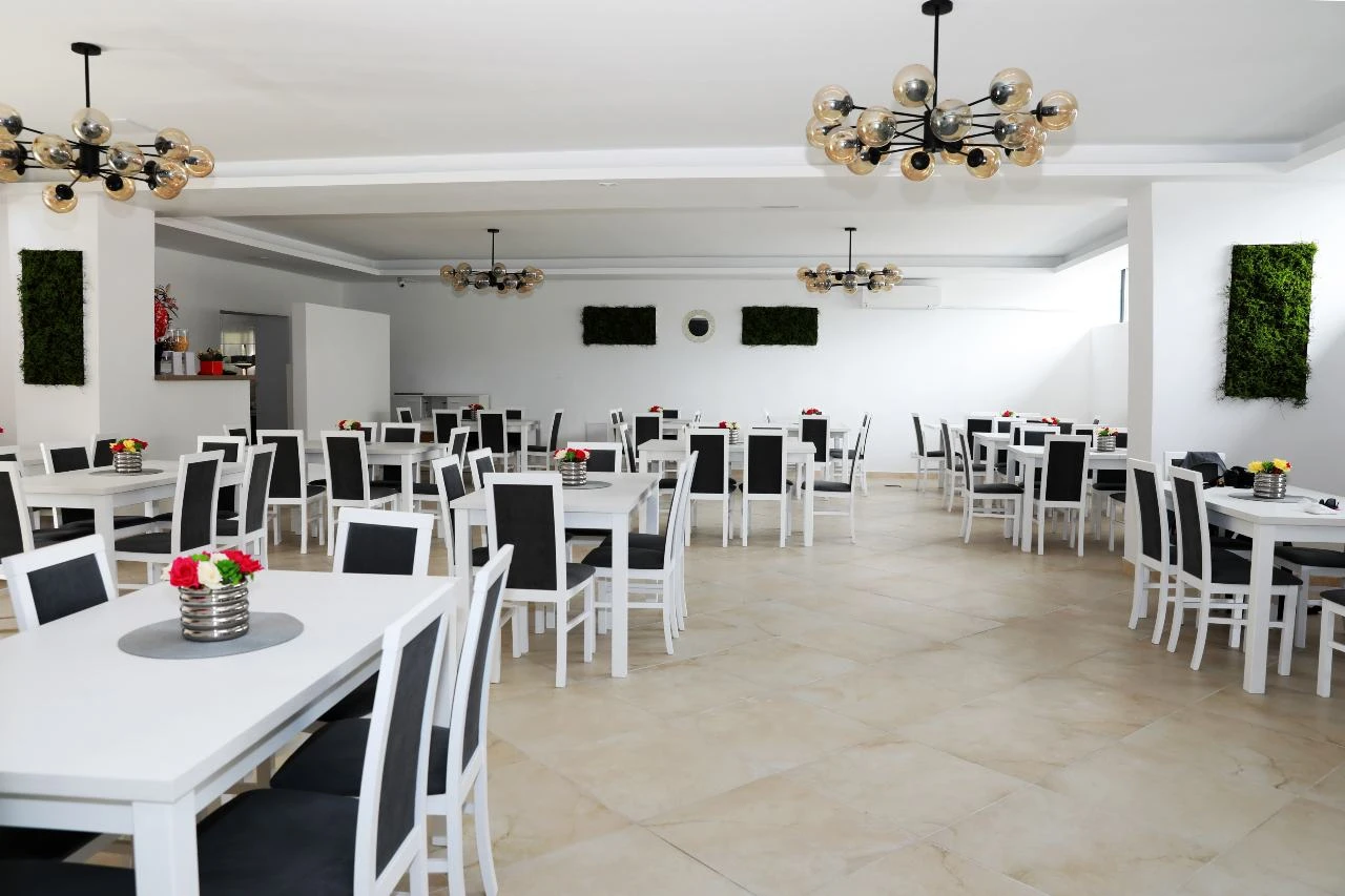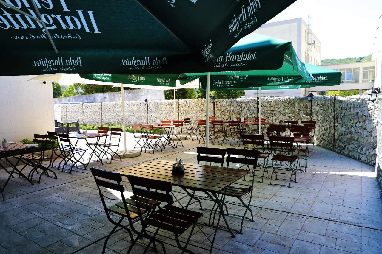 - Pe lângă sala interioară cu 90 de locuri, hotelul dispune de două terase exterioare, fiecare având o capacitate de aproximativ 50 de persoane, oferind priveliști superbe asupra zonei.
