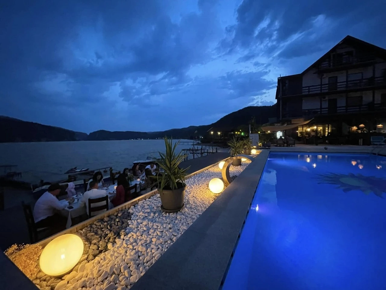 Cazare Revelion Orșova Eșelnița Pensiune*** | în Defileul Dunării (Cazanele Dunării), pe malul Dunării, piscină exterioară, restaurant și terase cu vedere la Dunăre, Wi-Fi, aer condiționat, ponton privat, excursii cu barca, parcare | 5km Statuia lui Decebal