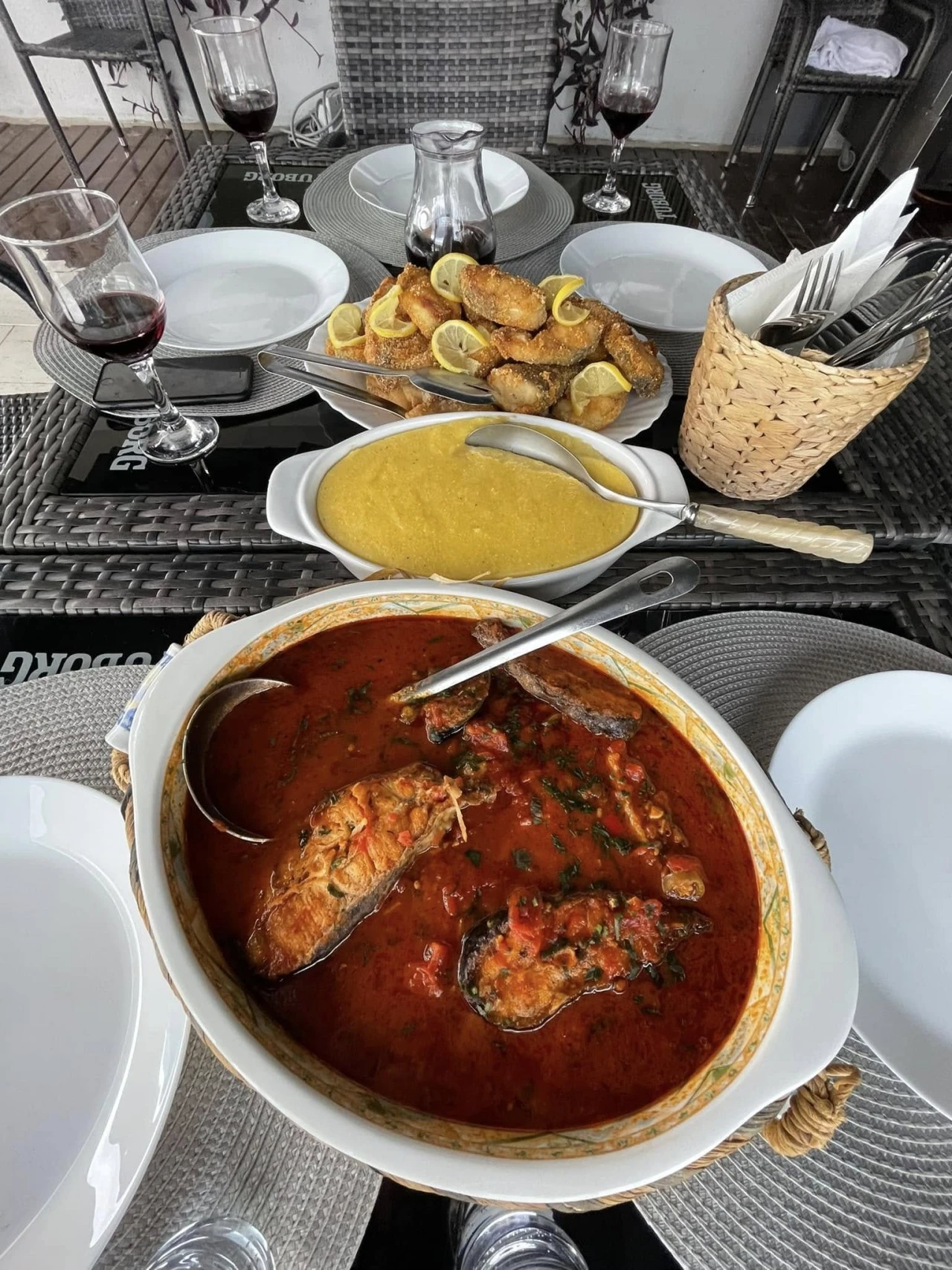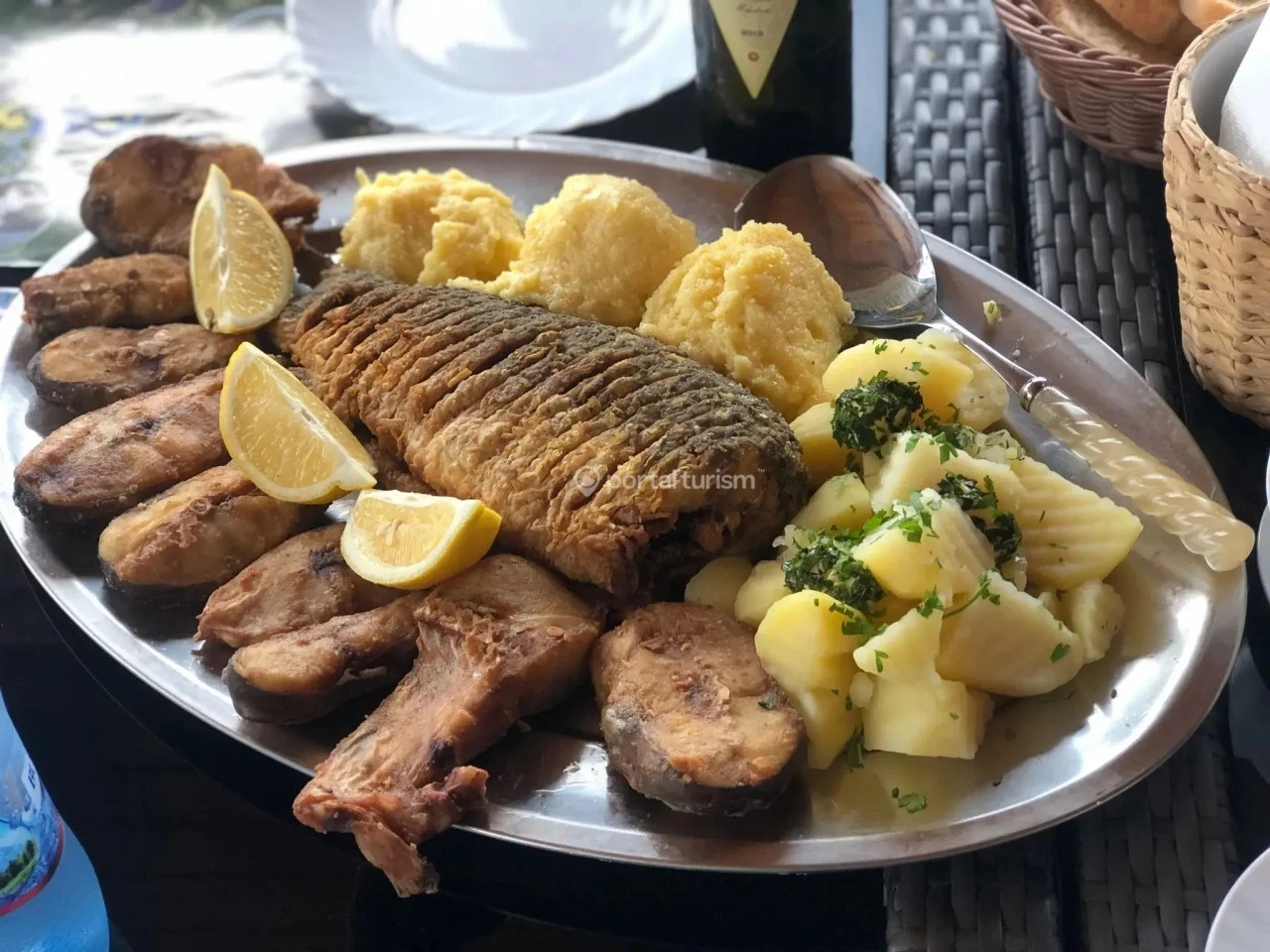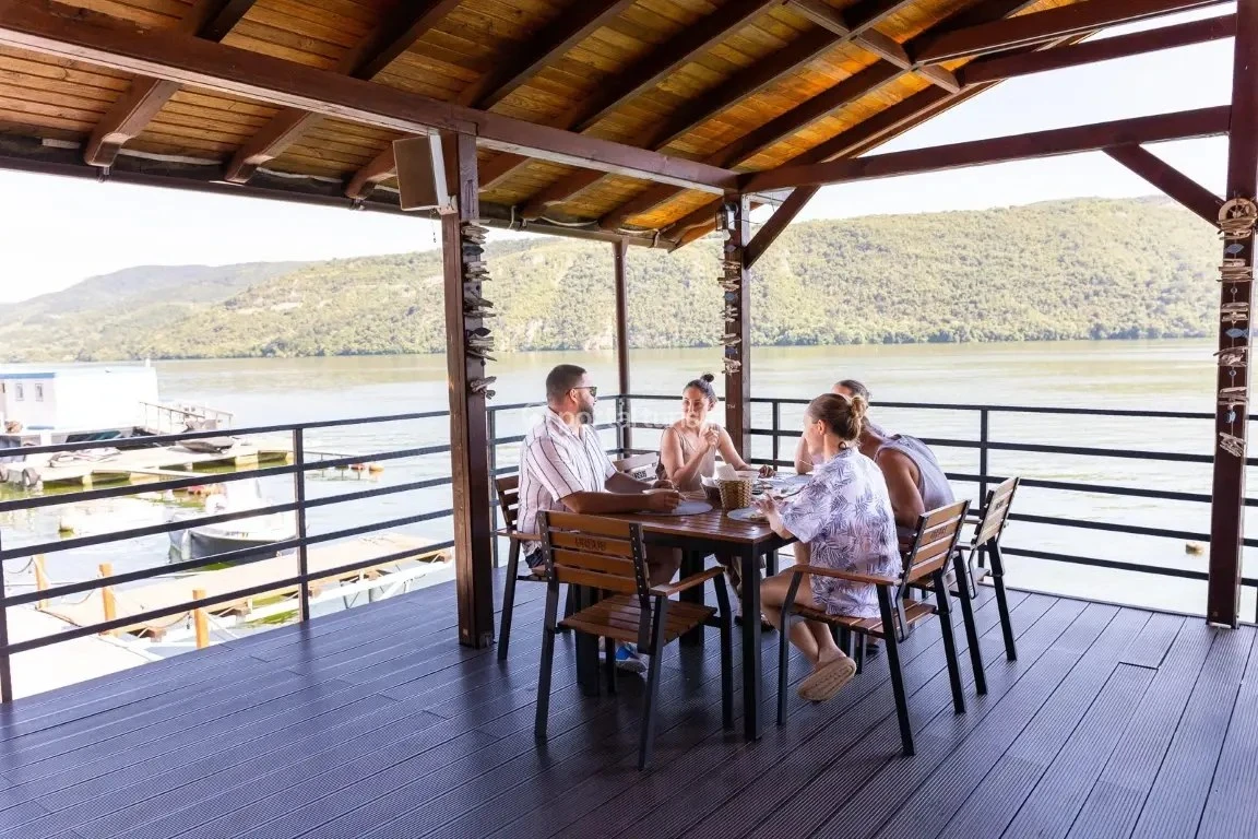 Restaurantul propriu este renumit pentru preparatele tradiționale din pește proaspăt capturat din Dunăre: saramură de pește, ciorbă de pește, pește la grătar și specialități locale. Bucătăria combină aromele dunărene autentice cu influențe ardelenști. Spațiul este potrivit atât pentru mese liniștite, cât și pentru evenimente și petreceri.