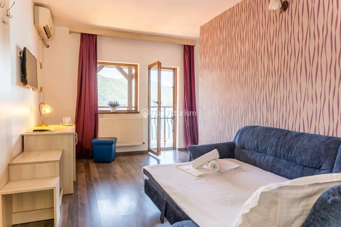 | Camera 1 | Pat matrimonial + fotoliu extensibil | 3 persoane | Cameră de familie |