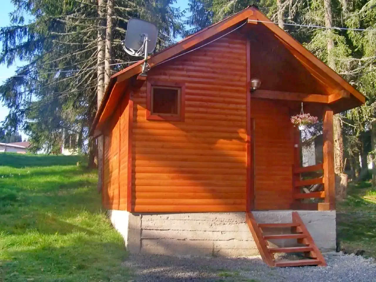 - Cele șapte căsuțe sunt echipate cu un pat matrimonial, două paturi supraetajate, baie proprie cu duș și frigider, iar cele două căsuțe pentru două persoane dispun de un pat dublu, baie privată (WC și duș), precum și TV prin satelit (inclusiv canale maghiare).