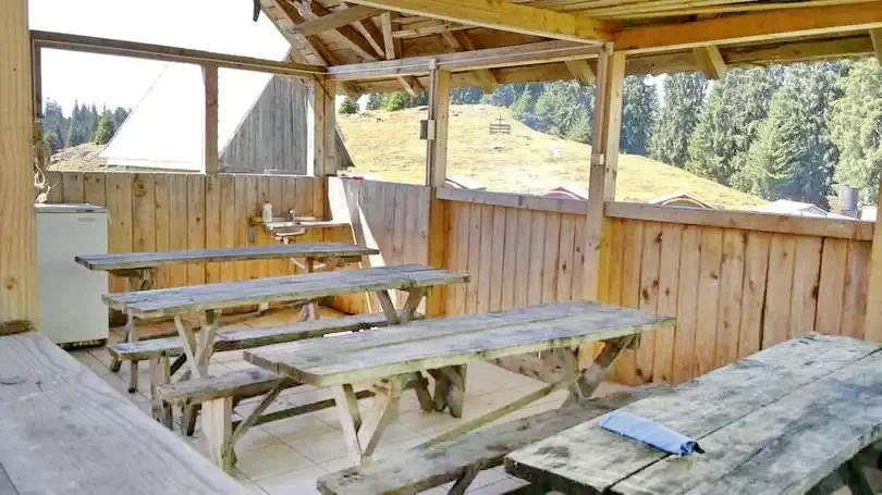 5 camere cu 4 locuri fiecare și o sală de mese comună, unde oaspeții pot lua masa sau juca jocuri de societate.