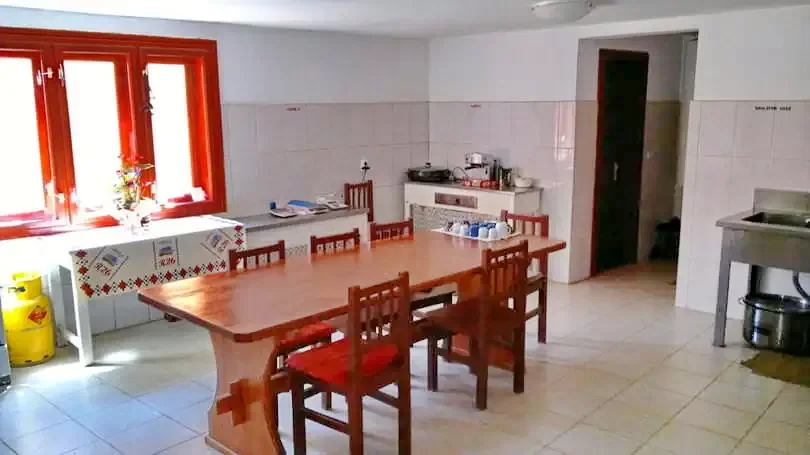 - În sala de mese a pensiunii, oaspeții pot savura preparate gustoase, de casă, pregătite din ingrediente locale. Sala de mese spațioasă este dotată cu televizor, oferind ocazia de a petrece timpul într-o atmosferă plăcută în timpul meselor comune.