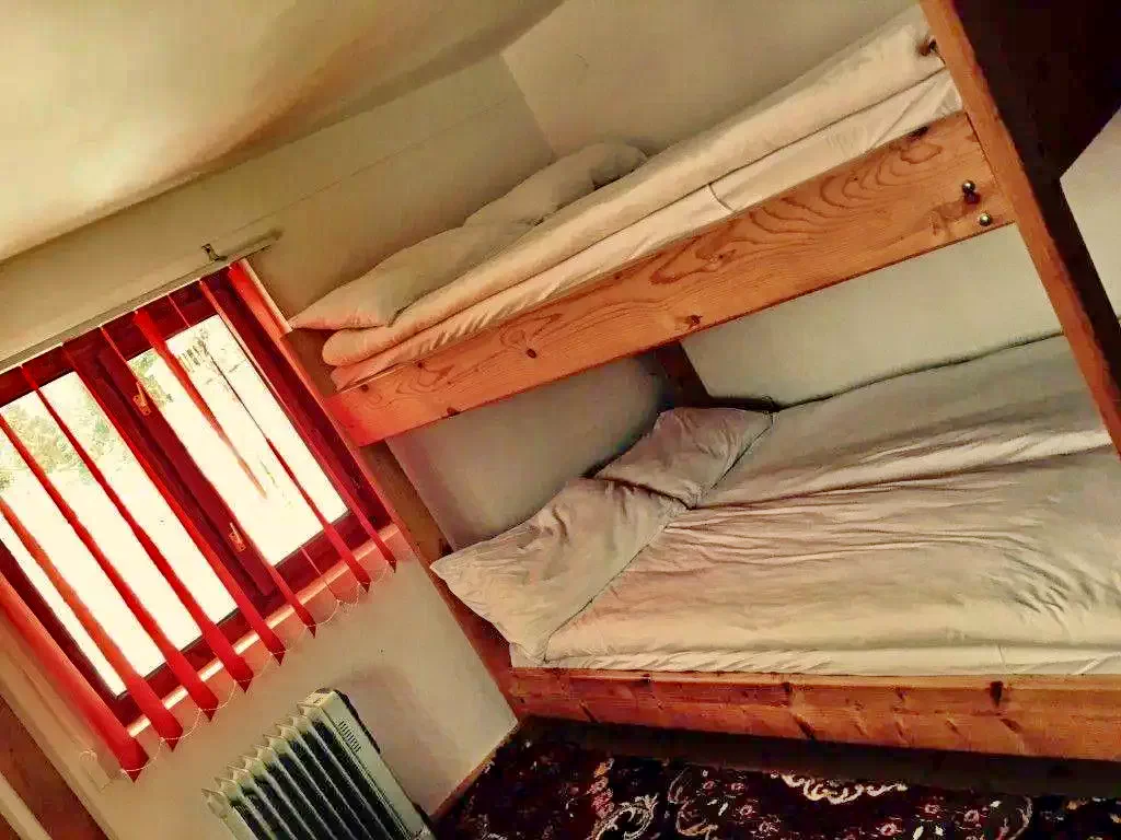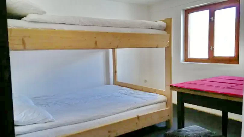 Camere: 5 camere de câte 4 locuri, fiecare dotată cu un pat dublu supraetajat și baie proprie (capacitate totală: 20 de persoane).