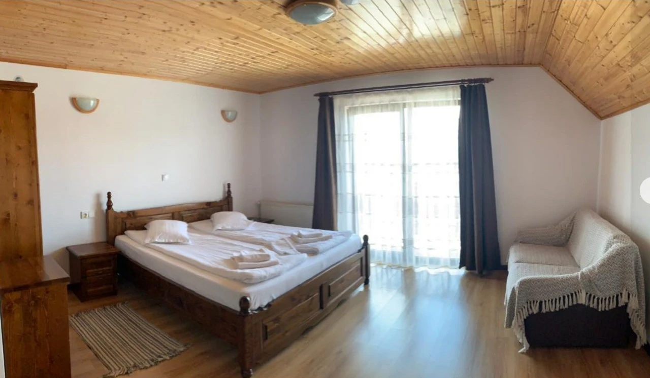 - 1 cameră superioară cu pat matrimonial și balcon - fiecare are baie proprie, balcon, TV, Internet, uscător de păr, încălzire centrală, pat extra-mare și canapea.