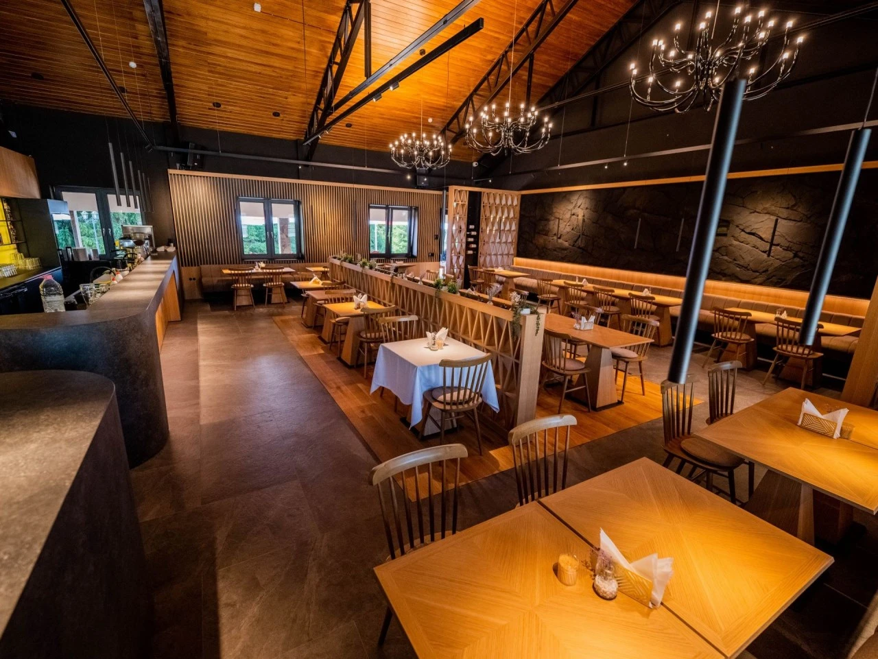 - Restaurantul hotelului combină tradițiile locale cu eleganța modernă, oferind o atmosferă perfectă pentru prânzuri în familie, cine romantice sau mese organizate pentru grupuri.