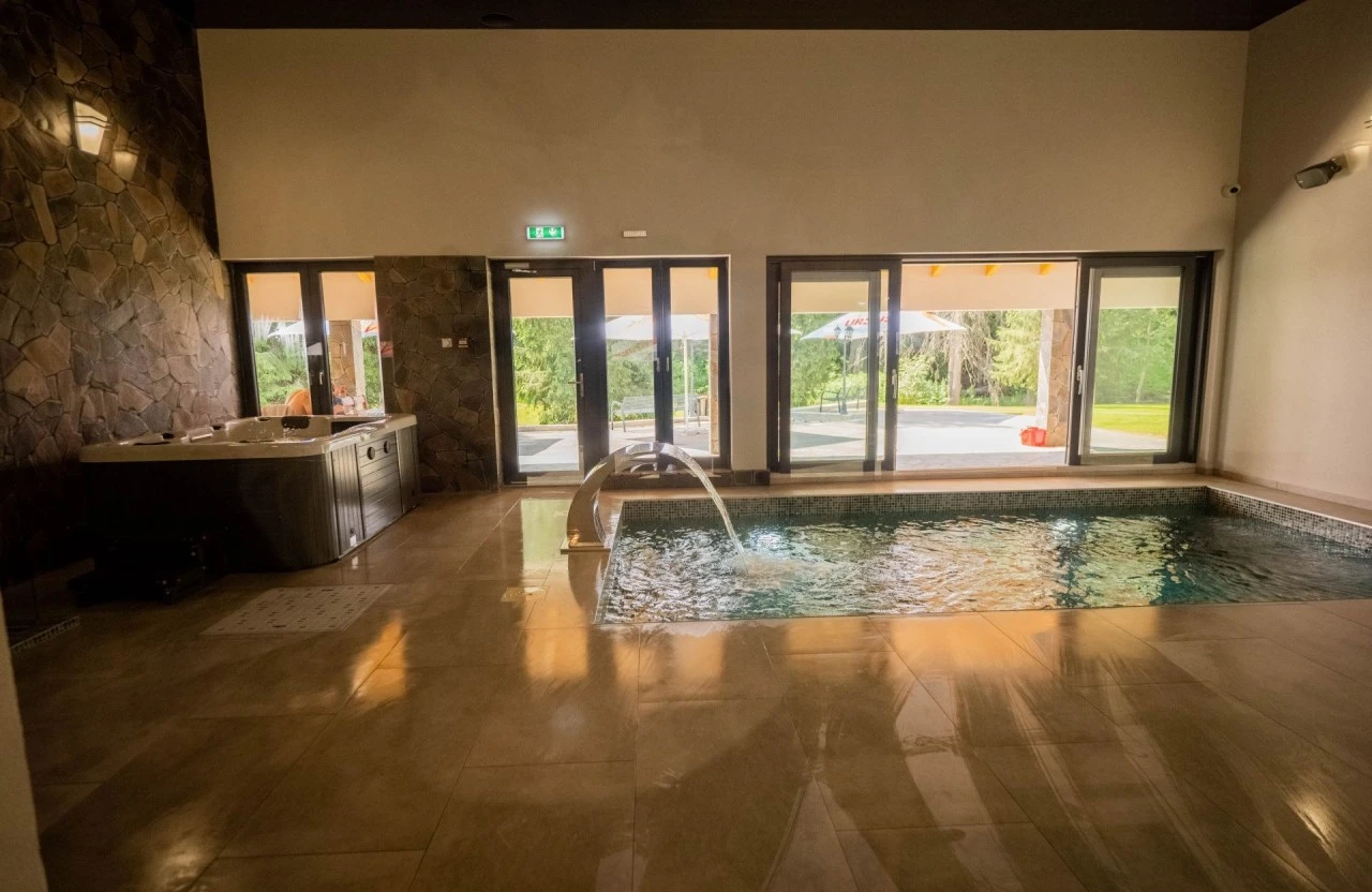 • Piscină și wellness: Piscină interioară modernă, jacuzzi și saună pentru relaxare totală, perfecte pentru grupuri după o zi activă.