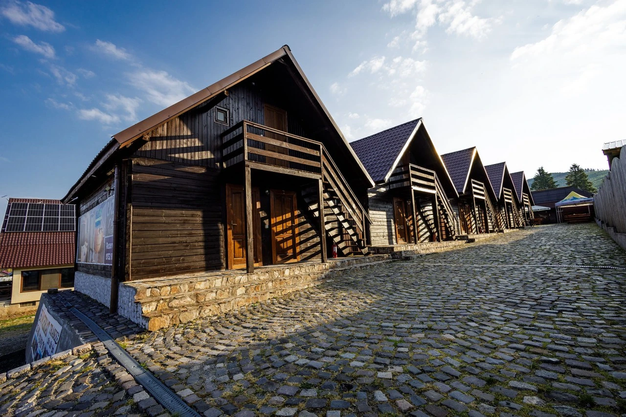 - Complexul este format din 5 Casute din lemn cu un numar total de 10 camere cu pat matrimonial si 5 camere mansarda cu 3 paturi, ficare camera avand baie proprie, televizor plat cu program prin satelit.