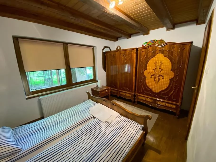 - Parter: 2 camere cu pat matrimonial (4 locuri)