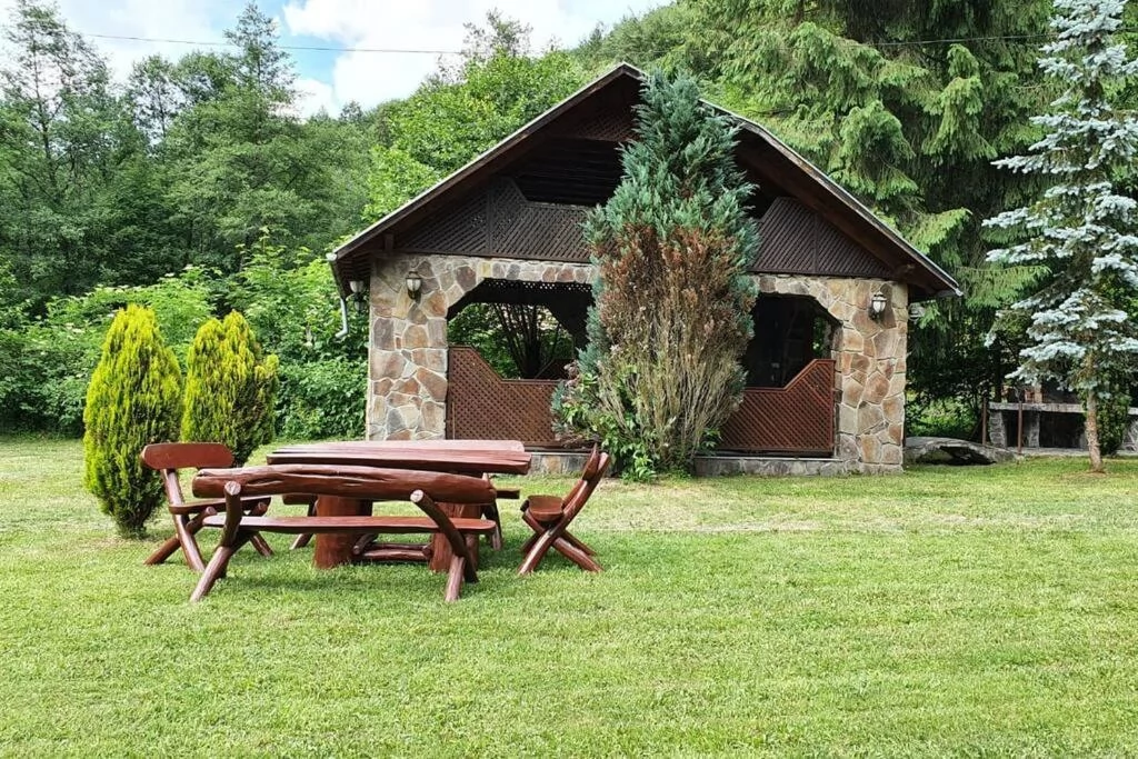 - În curte, un foișor acoperit, un loc pentru foc deschis și ceaun oferă posibilitatea de a găti în aer liber, permițându-le oaspeților să pregătească mâncăruri tradiționale secuiești.
