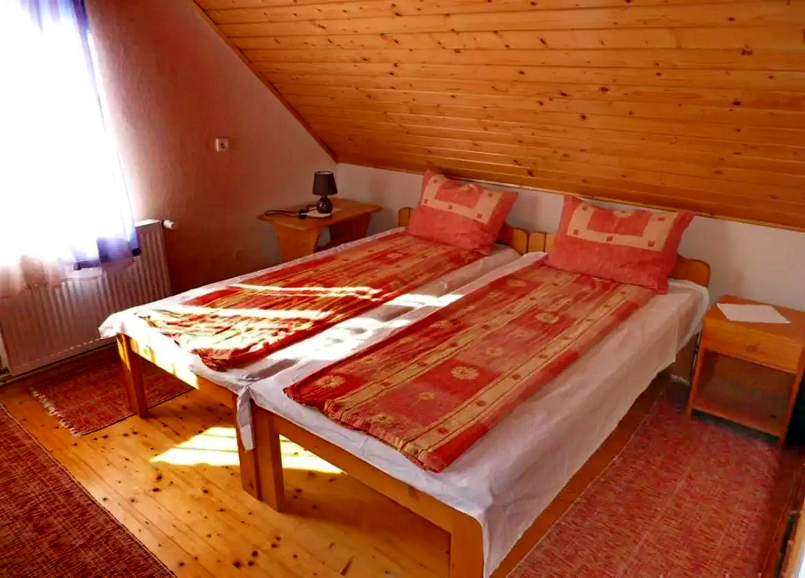 - Parter: 1 cameră cu 2 paturi matrimoniale (4 locuri)