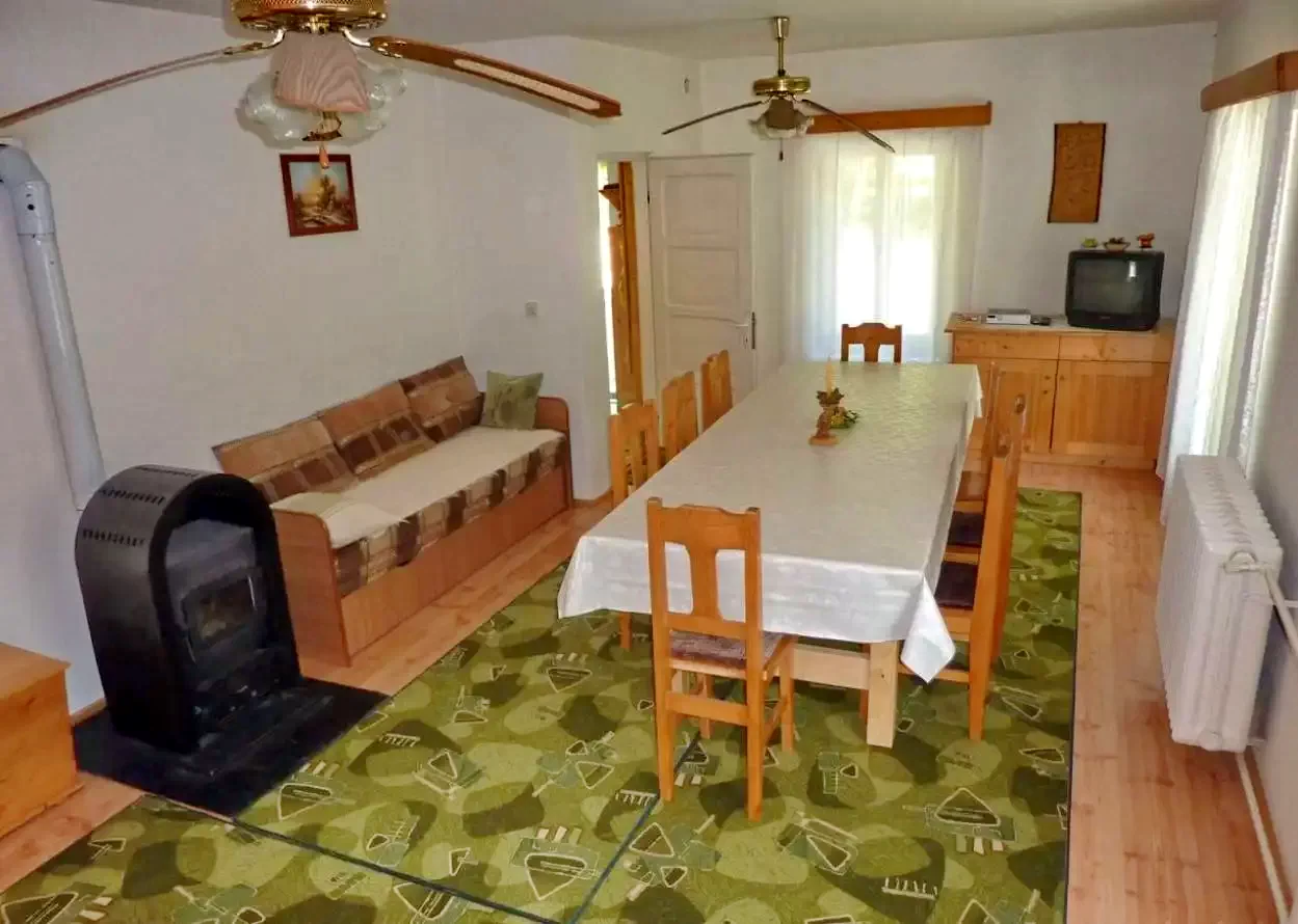 - În interior, un televizor cu antenă satelit asigură distracția, iar în curte se găsesc un foișor acoperit, loc de relaxare în grădină și o terasă – toate perfecte pentru odihnă.