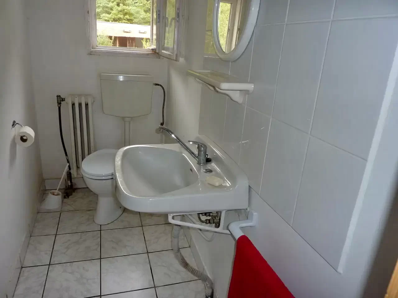 Baie cu duș, WC cu rezervor de apă și lavoar + WC separat la etaj