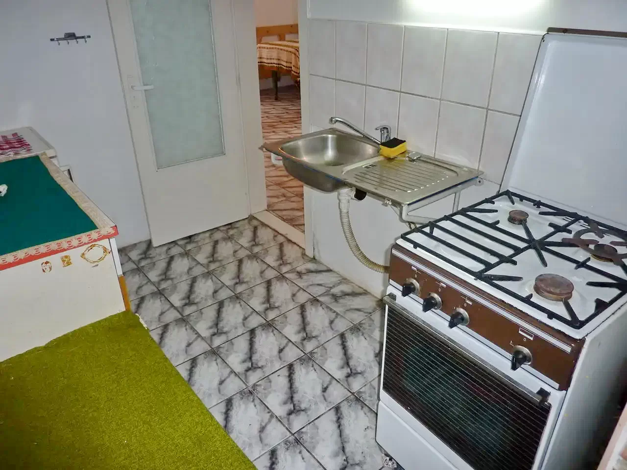 - La parter se află un living-sufragerie spațios, o bucătărie complet utilată, o baie cu duș (cu WC și lavoar), precum și o cameră cu pat dublu.