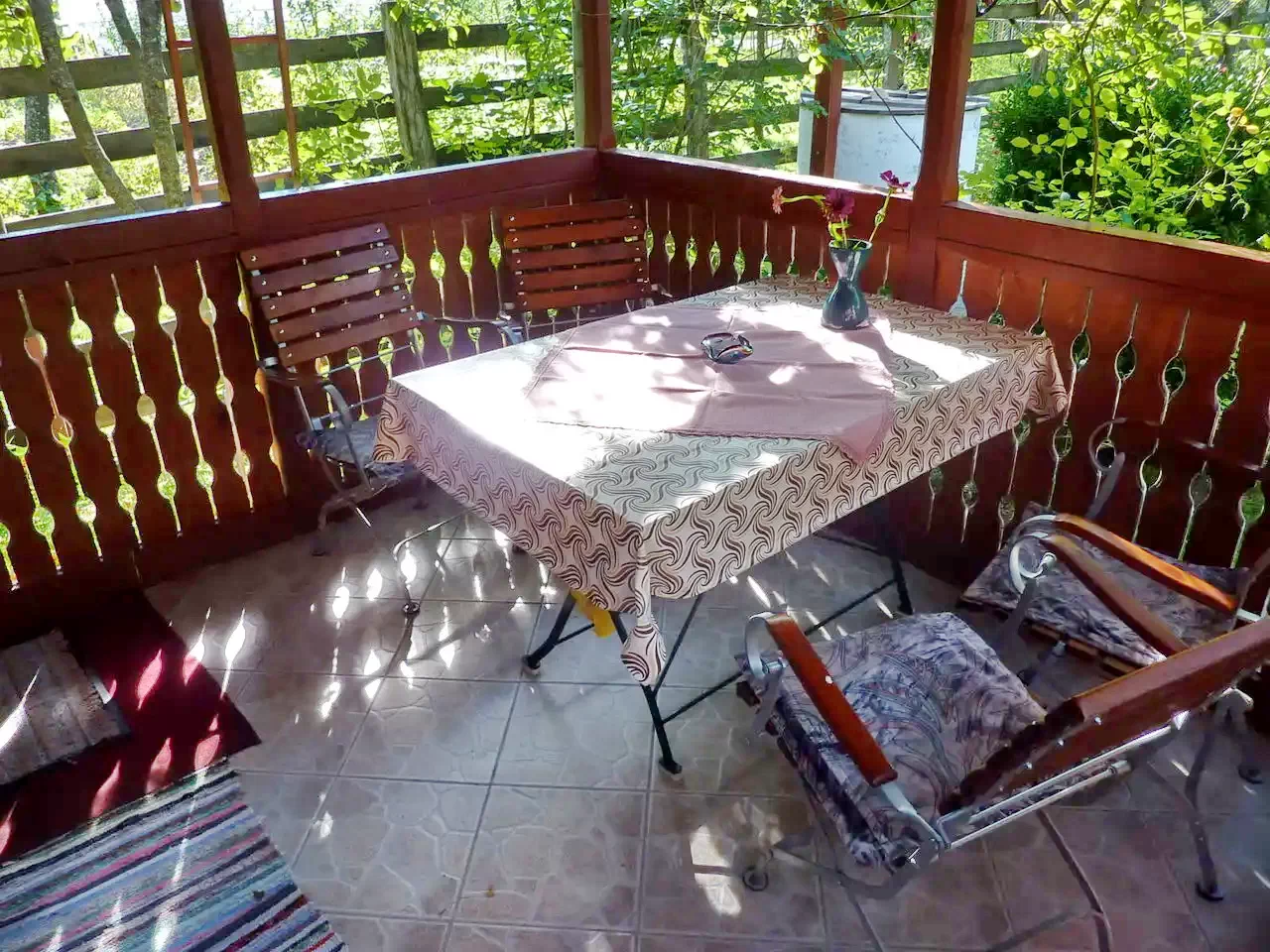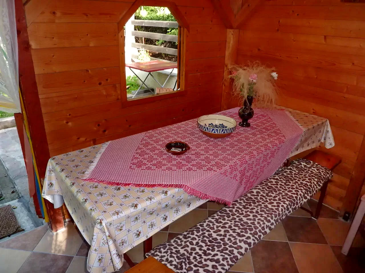 - În curte se află un foișor acoperit, un cuptor pentru grătar secuiesc, un loc pentru foc deschis, ceaun și disc de gătit, oferind posibilitatea preparării mâncărurilor în aer liber, în stil tradițional secuiesc.