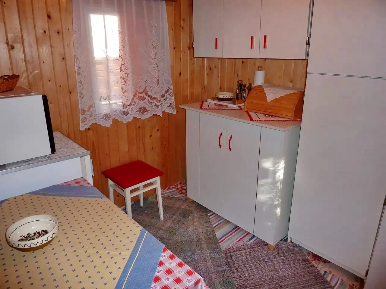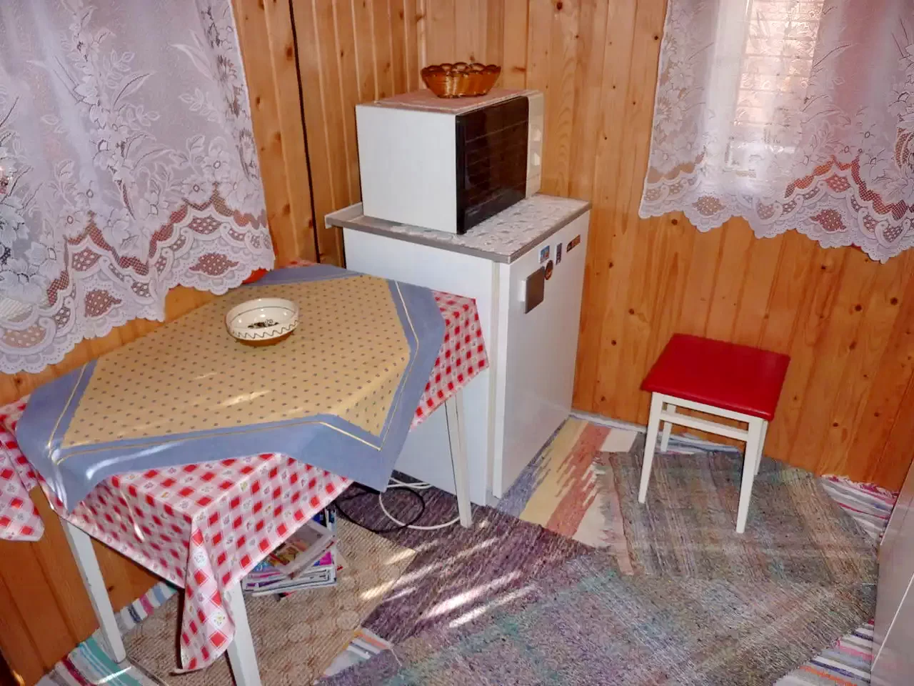 - Bucătăria casei se află într-o clădire separată, de 4x3 metri, complet echipată cu toate ustensilele necesare: aragaz pe gaz, frigider, cuptor cu microunde, prăjitor de pâine, cafetieră, fierbător de apă, oală sub presiune, precum și veselă și tacâmuri.