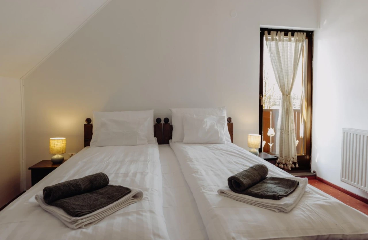 - Cameră 2: 2 paturi de o persoană, baie proprie