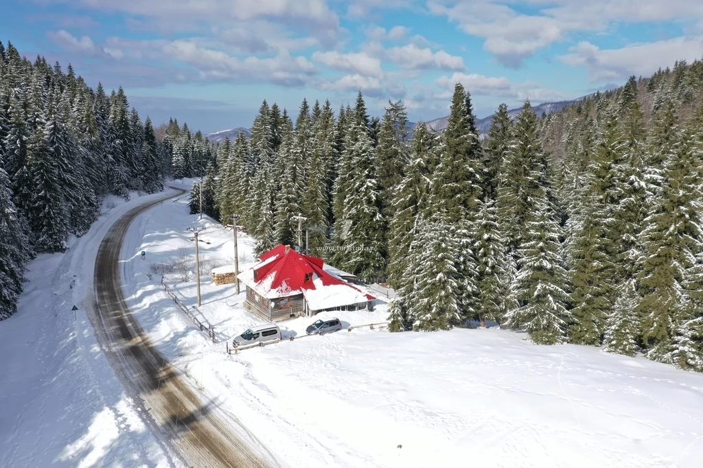 - Terasa cabanei in forma de L (dotata cu scaune si mese ) este închisa, încălzita. acoperita, are ferestre termopan si dimensiunea de 3 *6 m, 3*3 m.