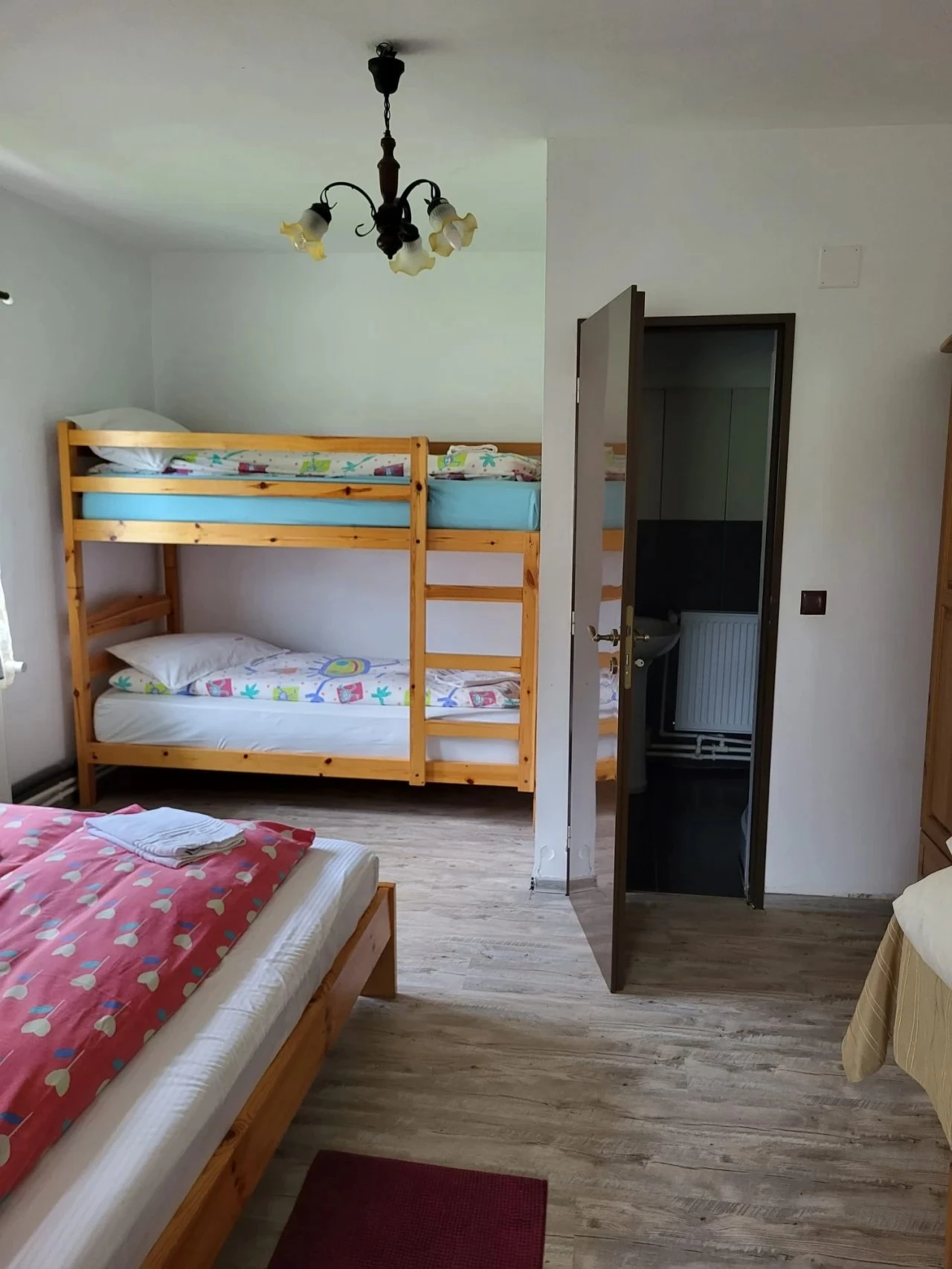 Structura de cazare- 4 camere de patru persoane (1 pat matrimonial și un pat suprapus/cameră)