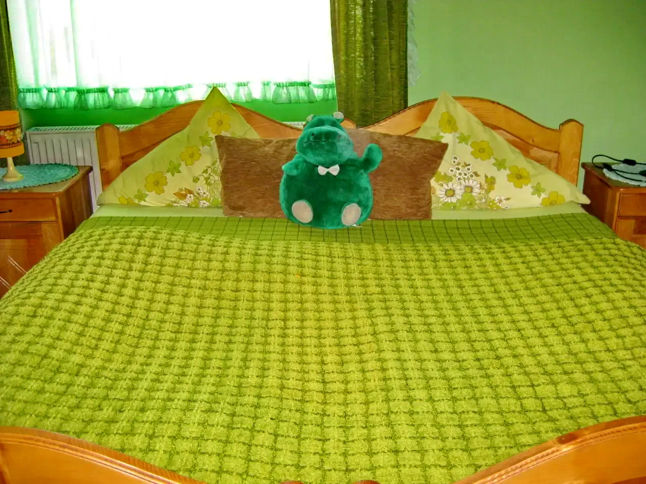- Cameră cu pat matrimonial și baie proprie.
