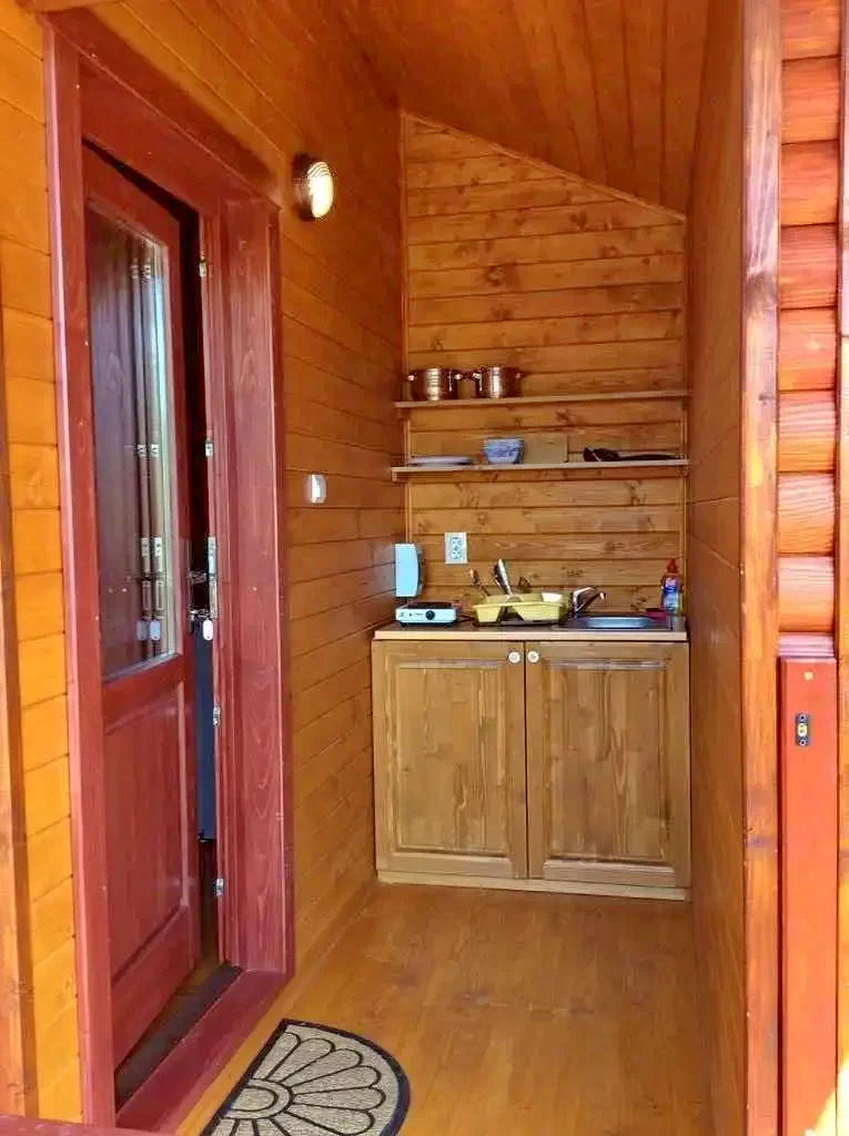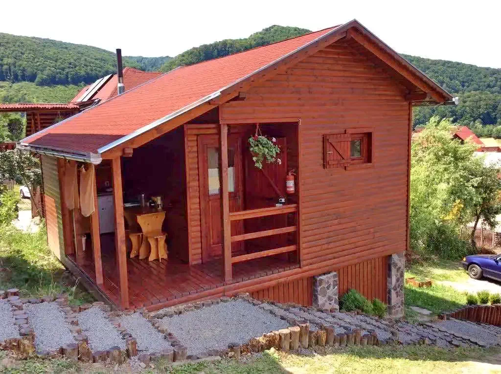 Complexul este alcatuit din noua case asemanatoare, care asigura loc de cazare pentru 36 de persoane. Fiecare casuta are o terasa mica, bucatarie, TV, frigider, 2 paturi de o persoană și o canapea cu două locuri.
