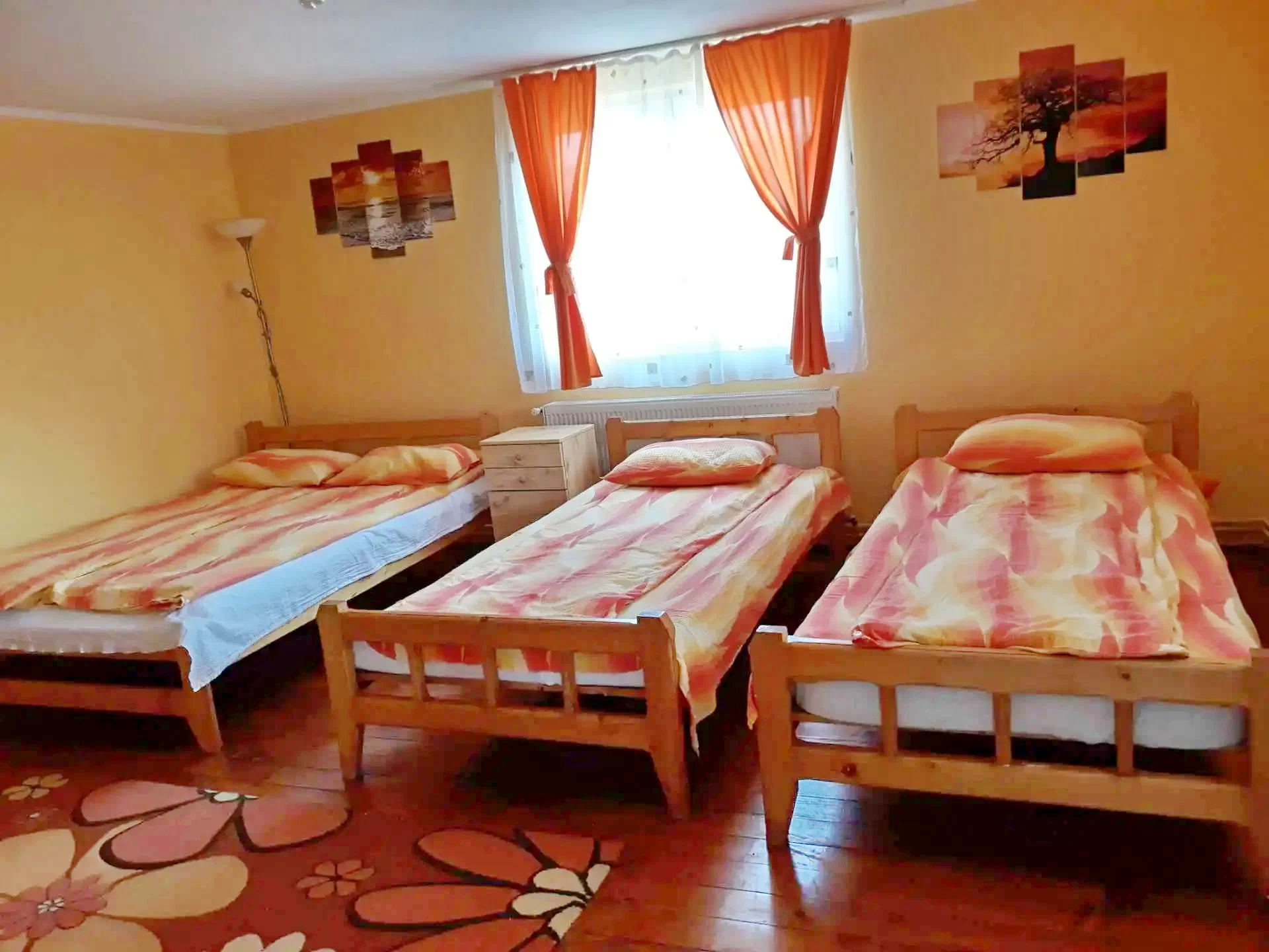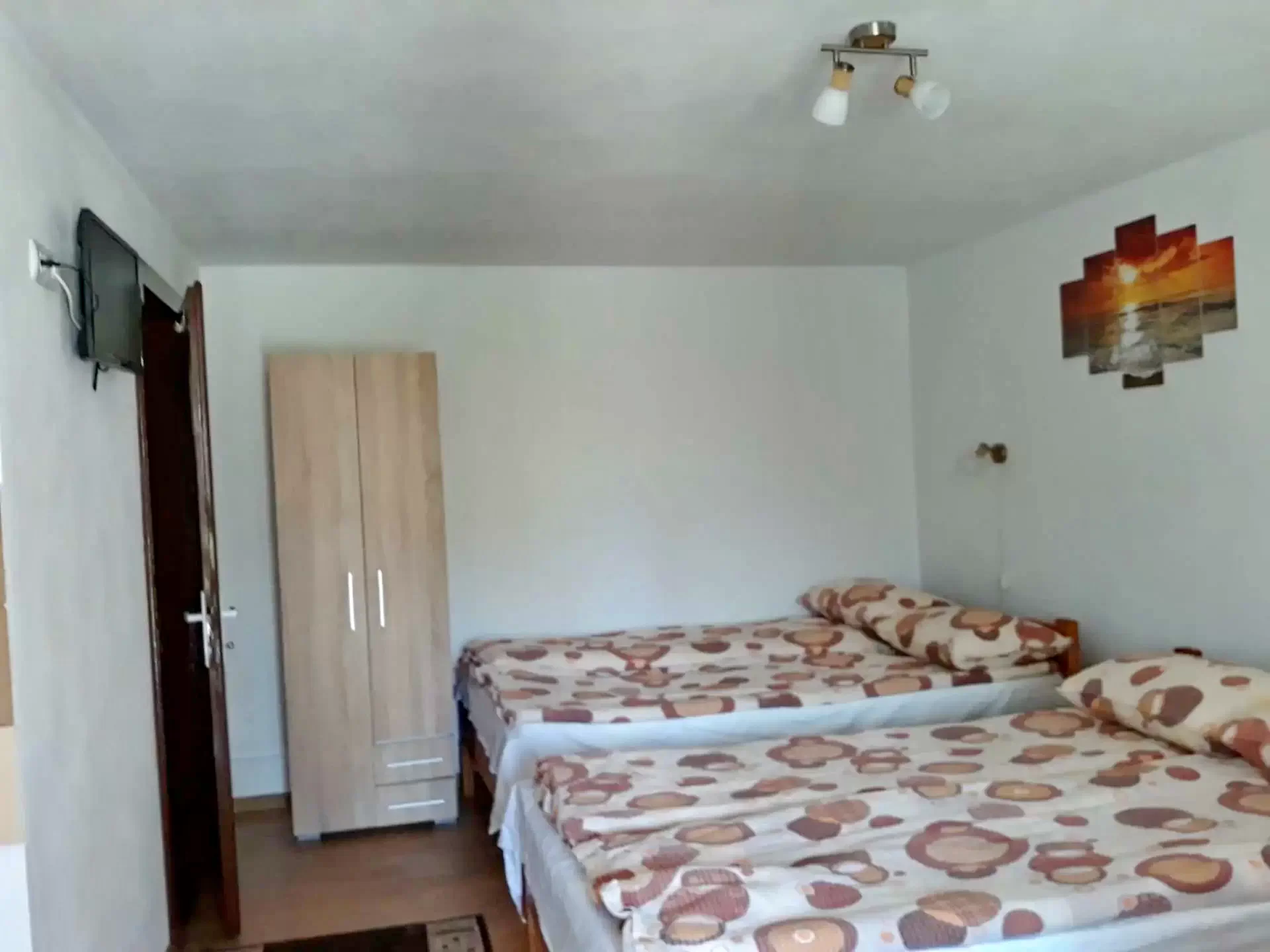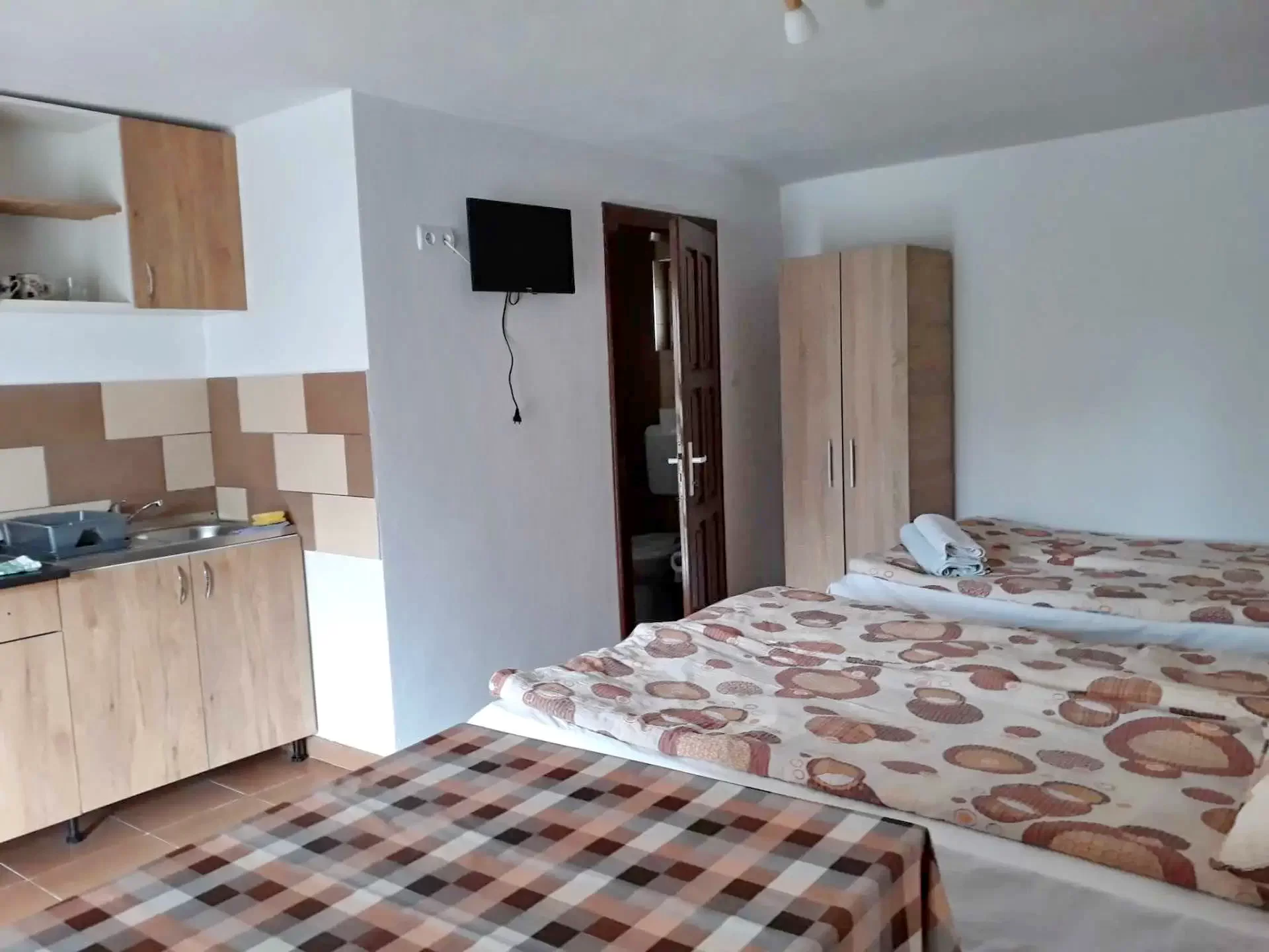 - Casa dispune de 5 garzoniere cu 2 sau 3 paturi, cu baie proprie si bucatarie și un apartament cu 2 camere, 2 băi si bucatarie. Fiecare camera este dotata cu televizor și are acces internet.