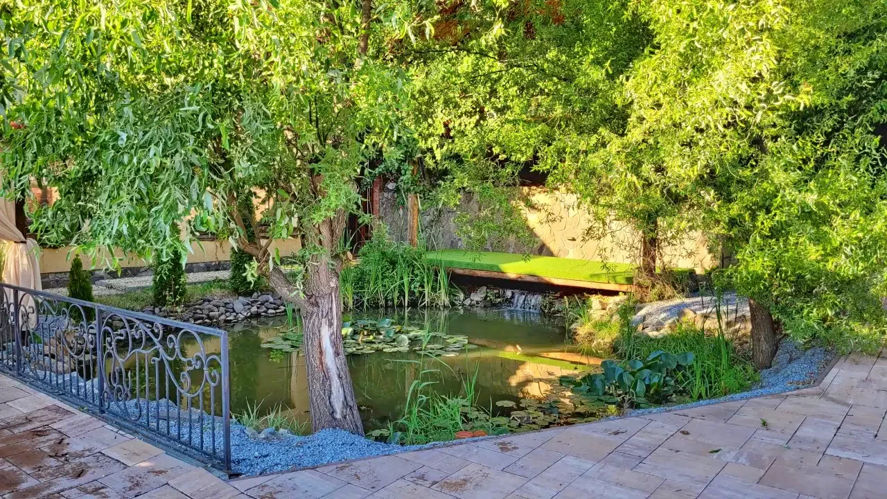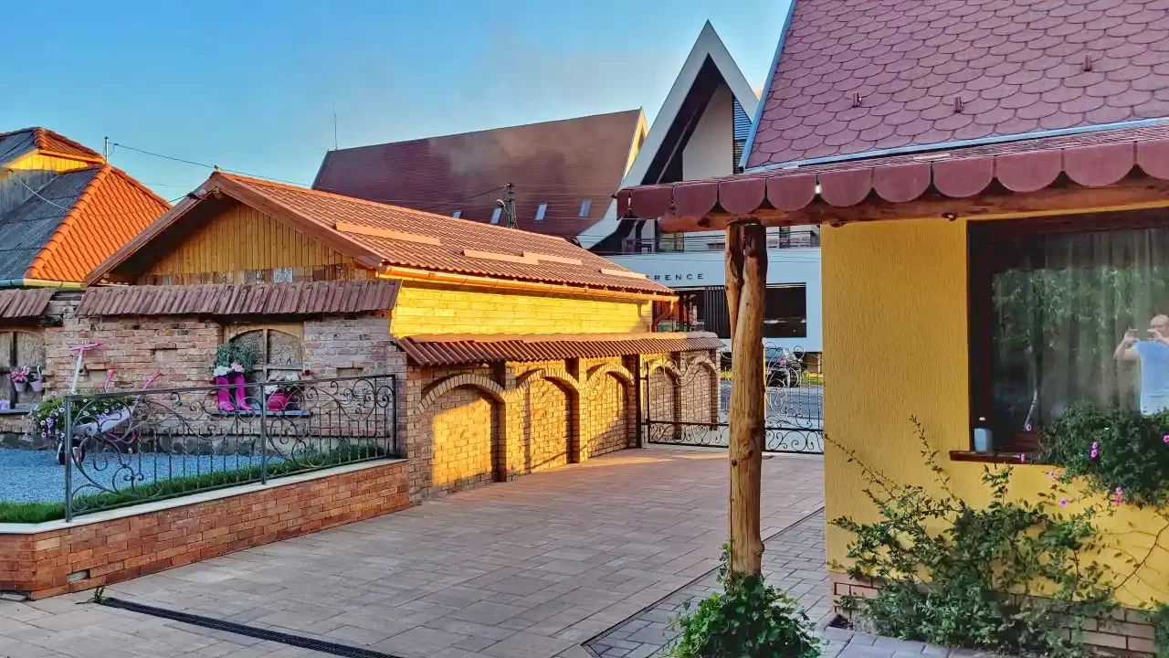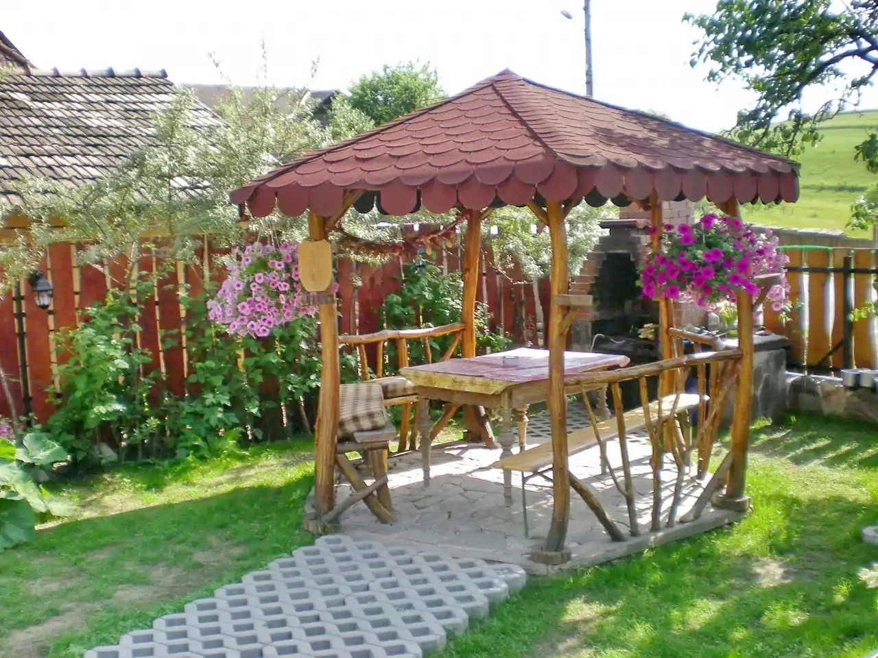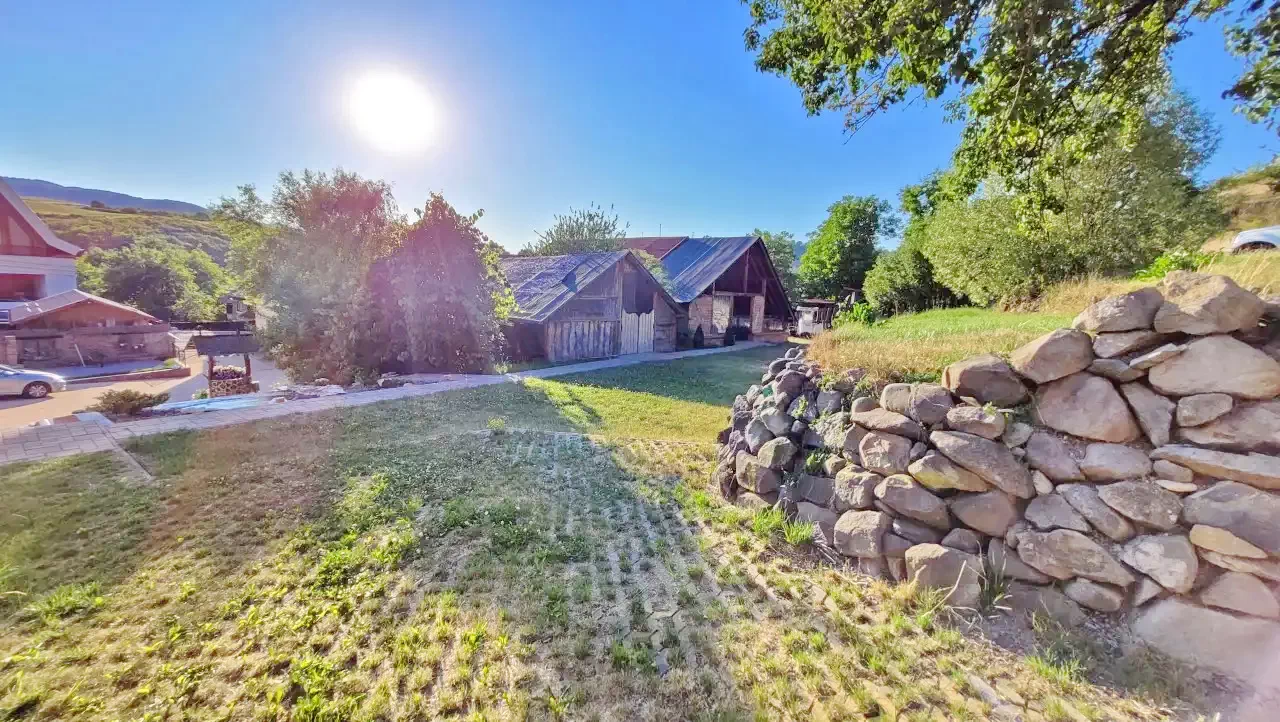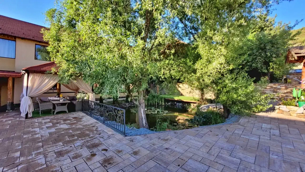 - Curtea și zona de agrement au o vedere excelentă asupra munților din jur și a așezării.