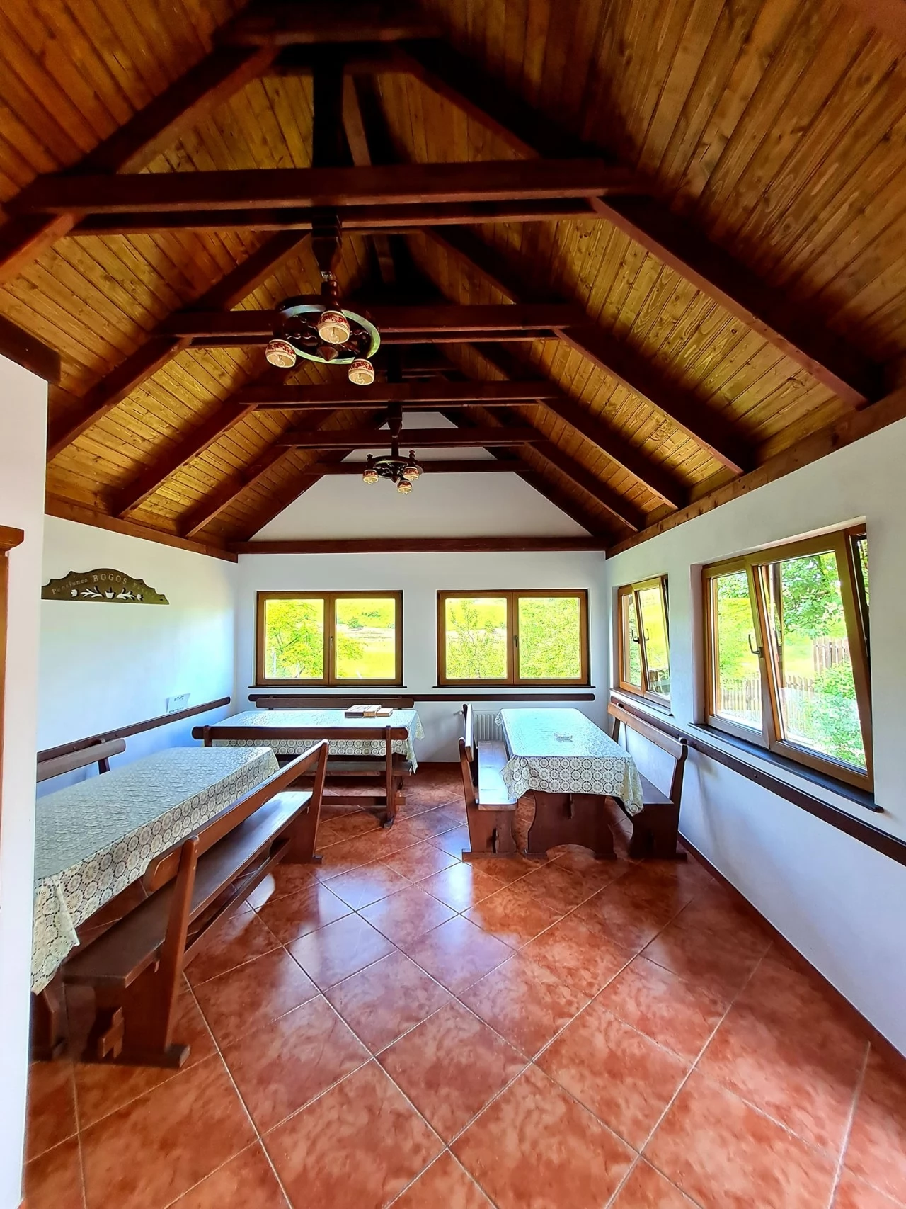 - Dispune de șase camere spațioase si confortabile cu baie proprie, paturile sunt dotate cu saltele ortopedice, lenjerie de pat alba, iar băile sunt dotate cu prosoape si prosoape de baie.