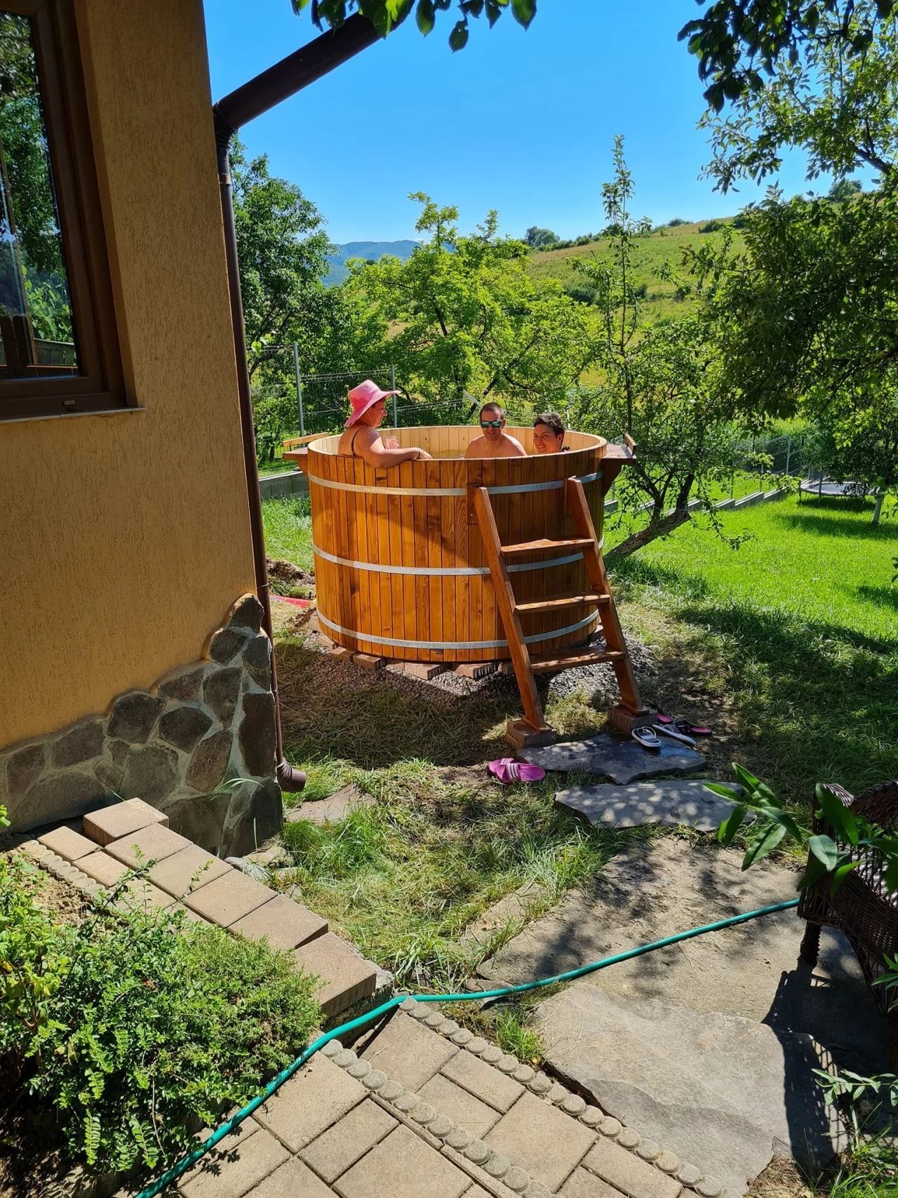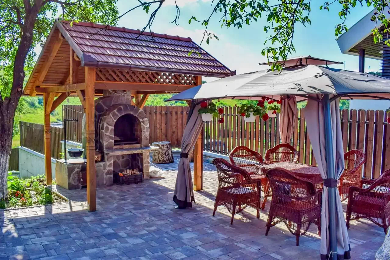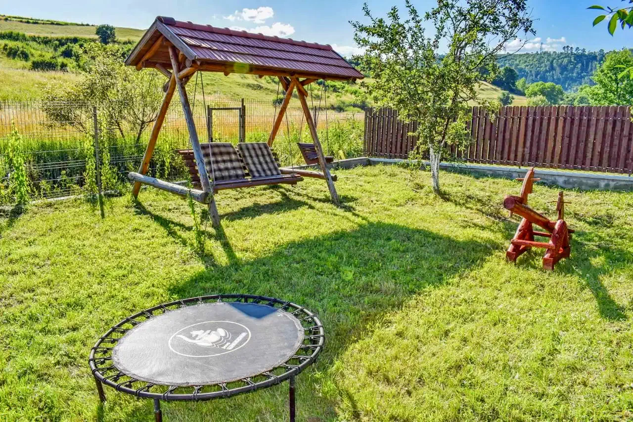 - Are o zona verde imensa, oferă servicii de Wellness - ciubăr cu apa sarata, iar pentru programe la aer liber terasa, foișor, cuptor, grătar, ceaun, loc de joaca pentru copii, precum si parcare privata dotat cu camera de supraveghere.