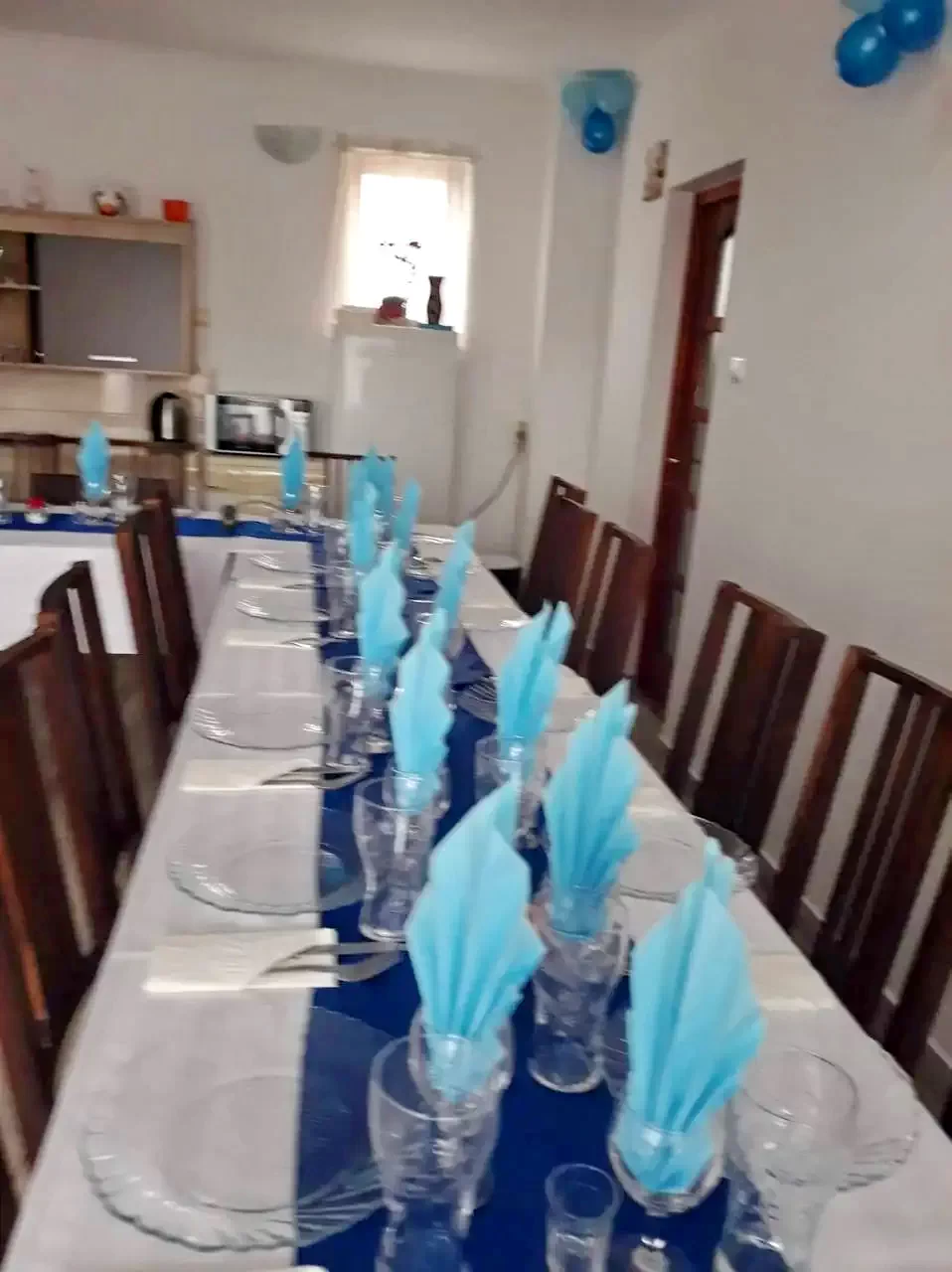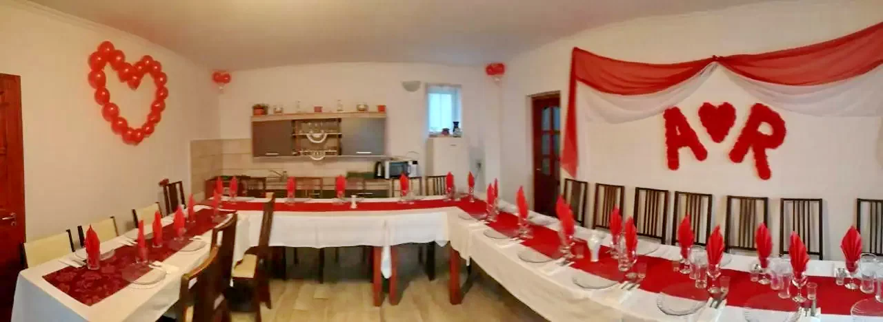 - Pensiunea dispune de o bucătărie comună complet utilată, de 28 m², și de o sală de mese spațioasă.