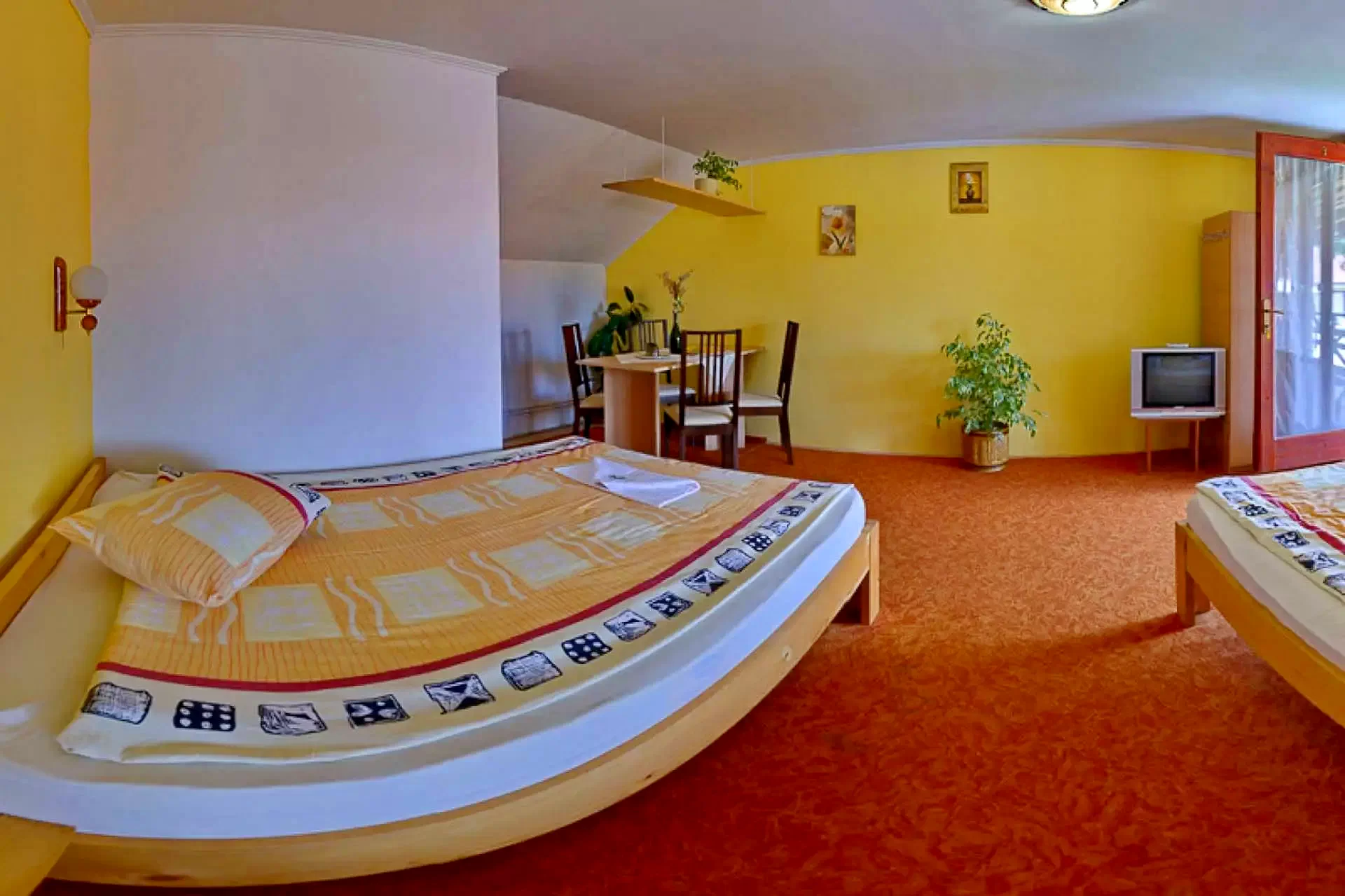 - 1 camera tripla cu un pat matrimonial si un pat simplu, baie proprie