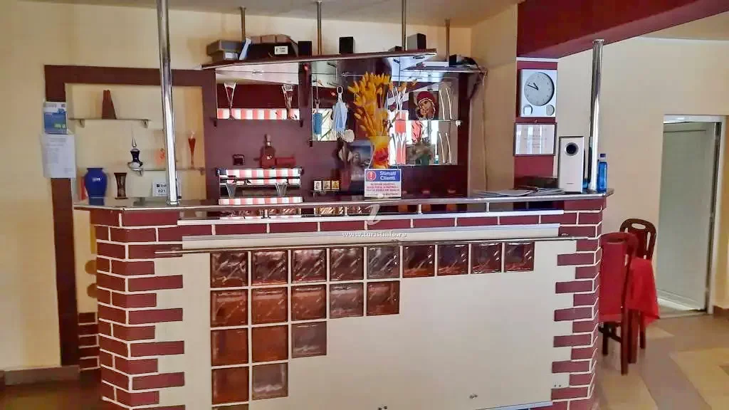 Pensiunea dispune de bucătărie utilata, sala de mese-living cu șemineu si televizor.
