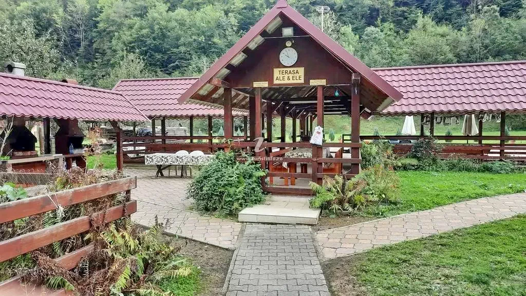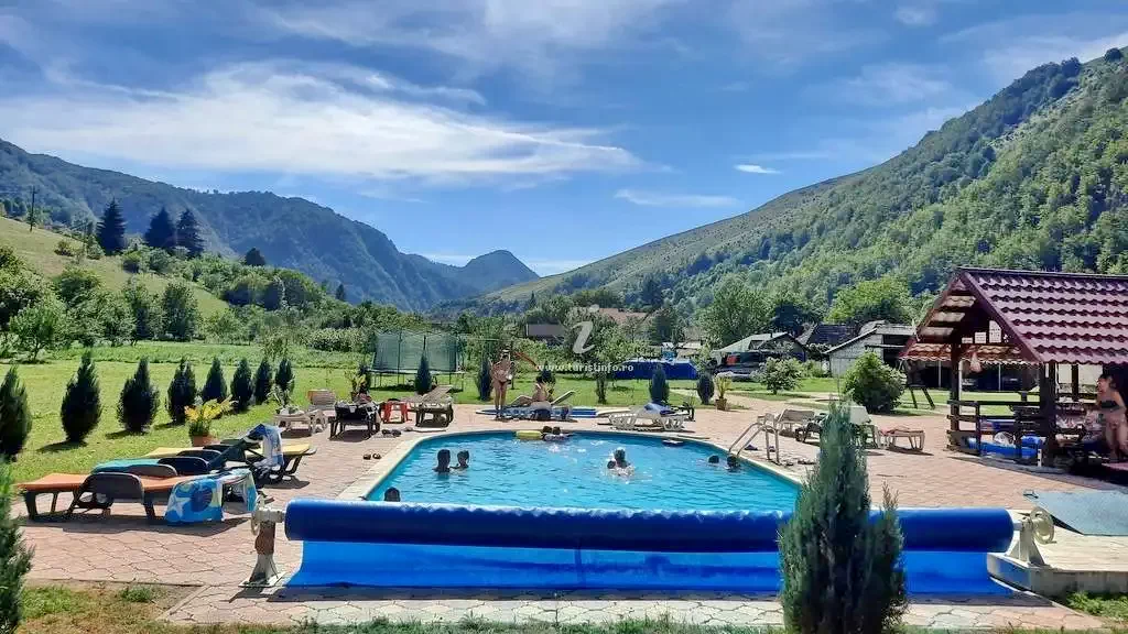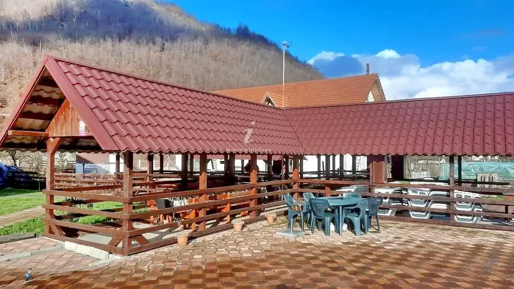- In spatele pensiunii se afla o filegorie cu capacitate de 48 de persoane, 2 cuptoare pe cărbune pentru mici si grătare, loc pentru preparat ceaun si alte preparate culinare, piscinele (11m / 5,5 m /1,5 m cu apa calda si luminata subacvatic), loc de joaca si relaxare de 4000 mp.