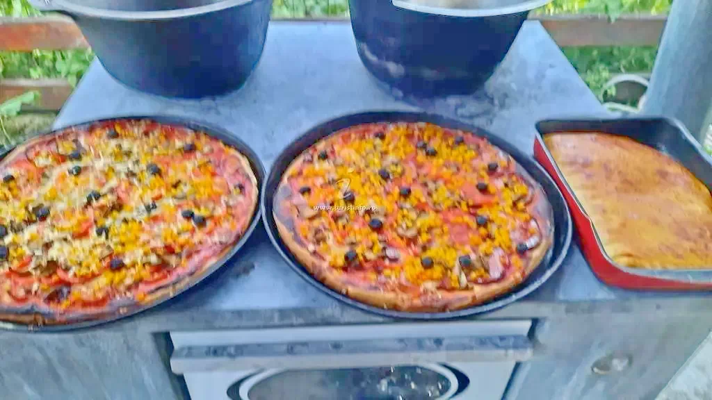 Oaspeții au posibilitatea sa-si prepare singuri mâncarea afara la grătar, pensiunea dispunând de 2 locuri pentru grătar, loc special pentru ceaun, precum si discuri, ceaune, ustensile necesare gătitului afara.