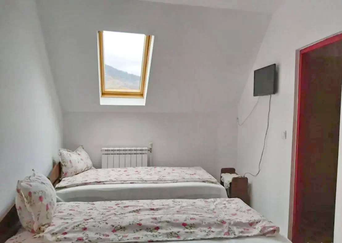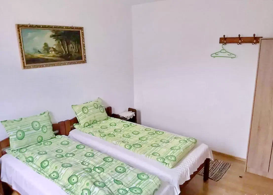 - Camera 1–2: 6 persoane (2 camere comunicante, cu baie proprie, 1 pat matrimonial + 4 paturi single)