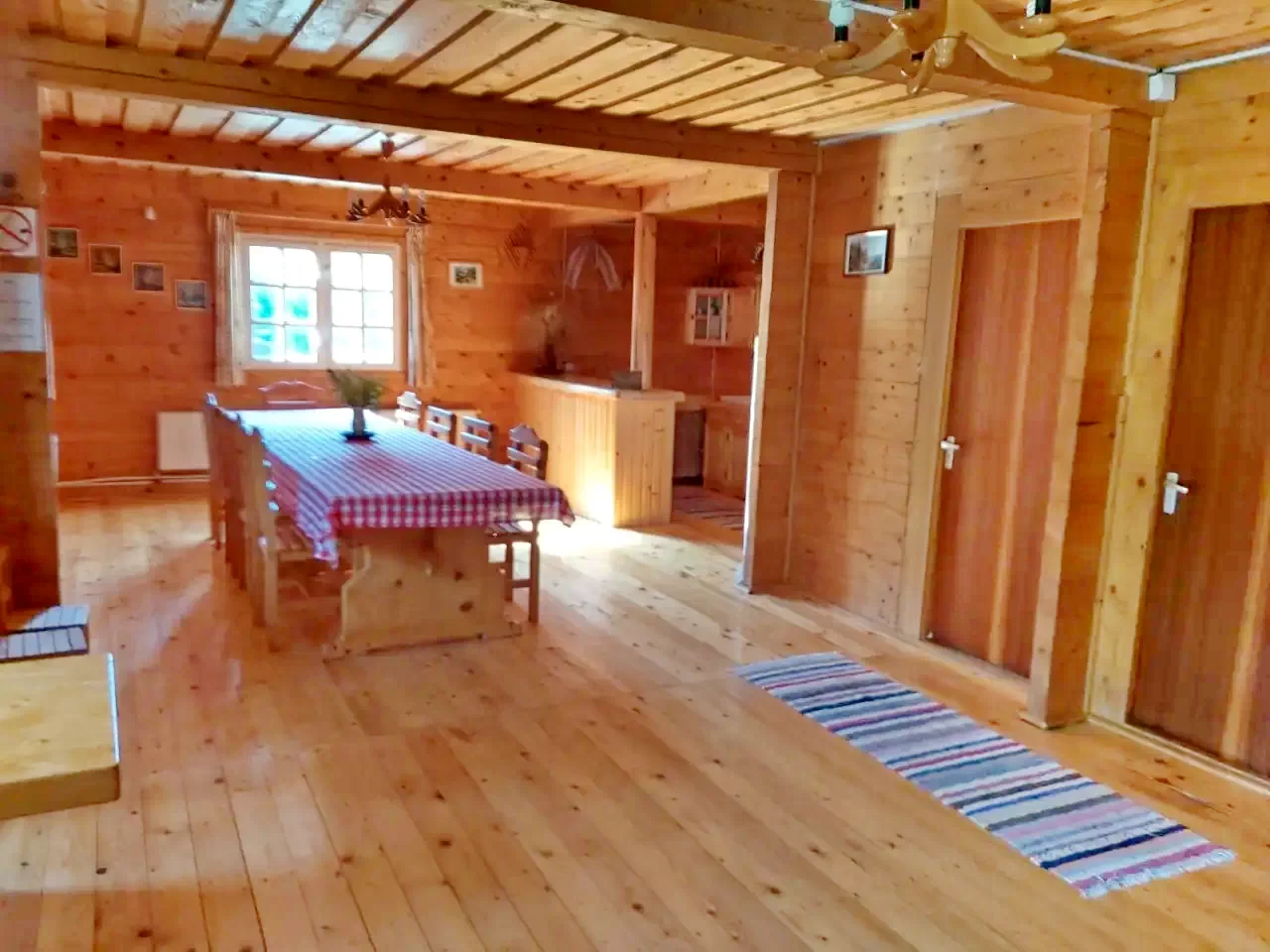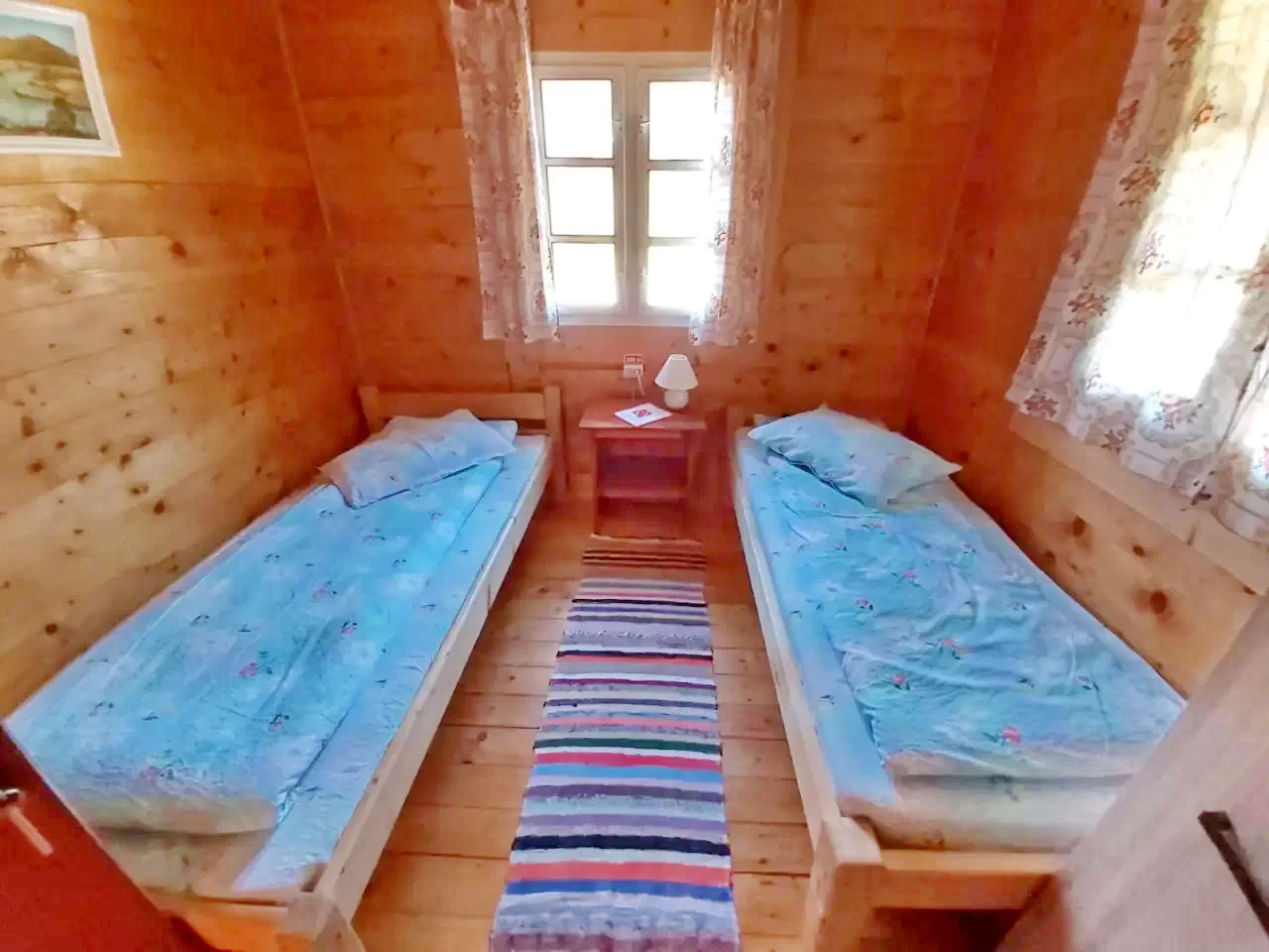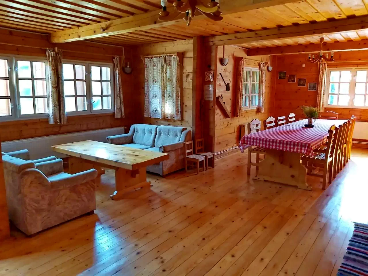 - Casă tradițională din lemn: 2 camere duble și 2 camere triple, plus bucătărie, living, baie și WC separat.