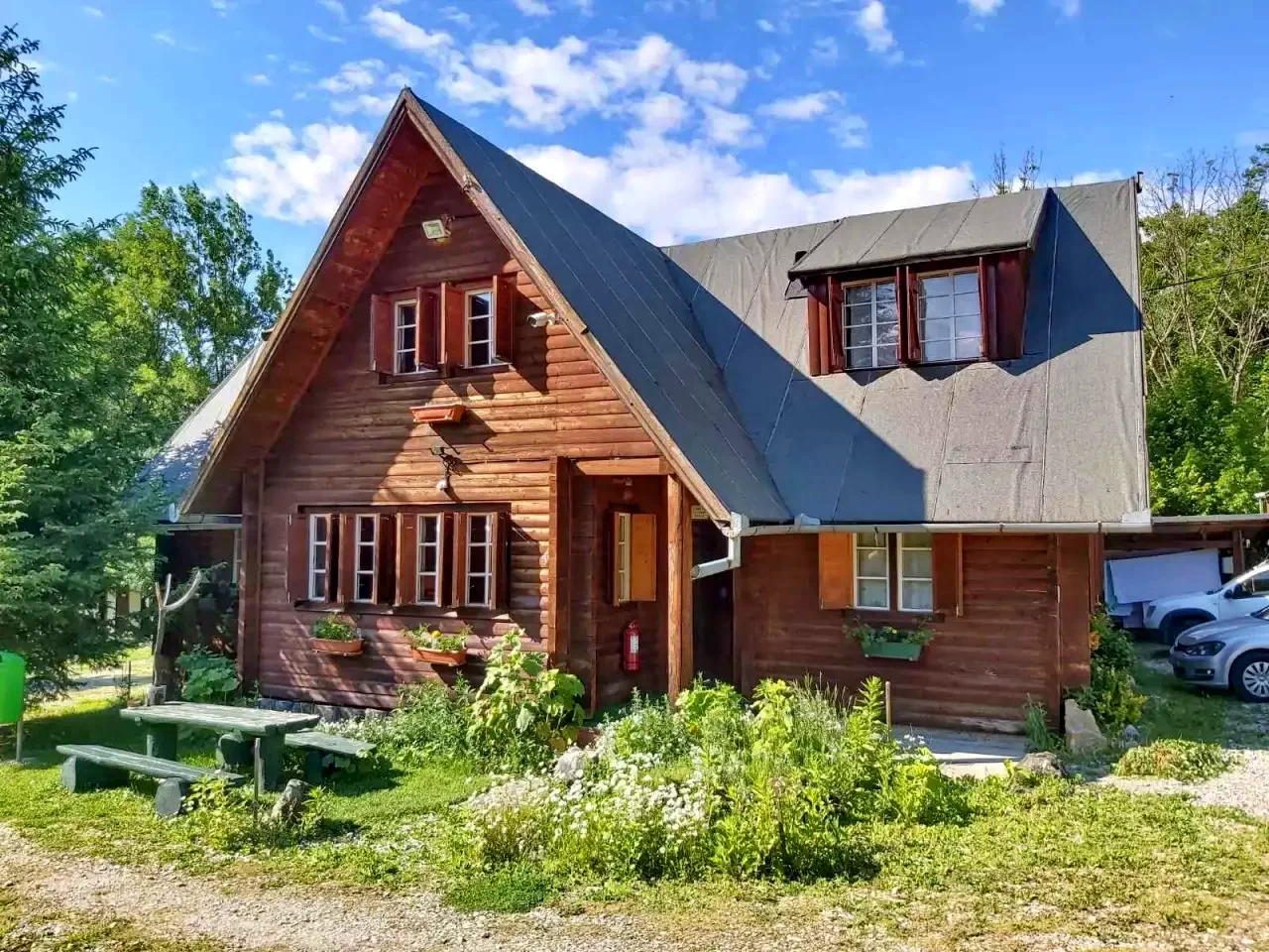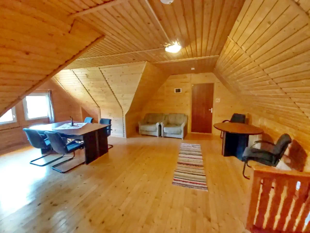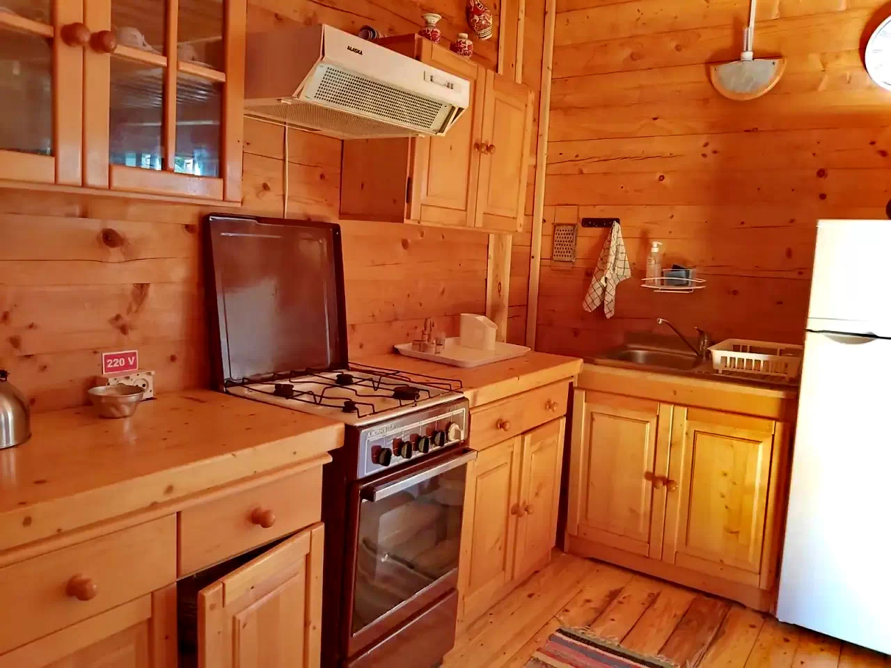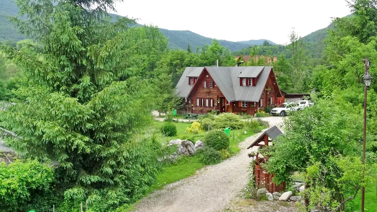 - Casă tradițională din lemn: 2 camere duble și 2 camere triple, plus bucătărie, living, baie și WC separat.