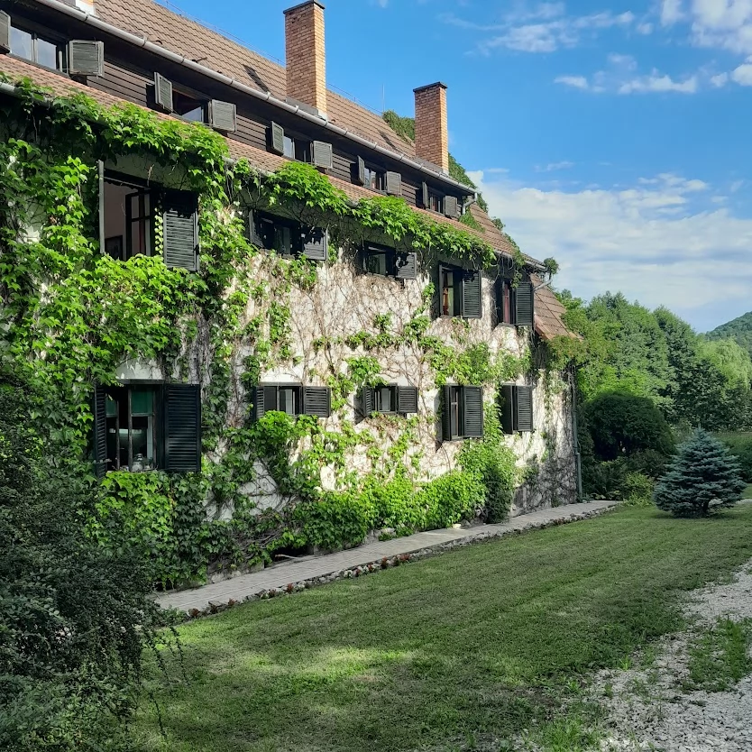 Clădirea principală din piatră, cu trei niveluri, oferă 50 de locuri de cazare în 20 de camere.