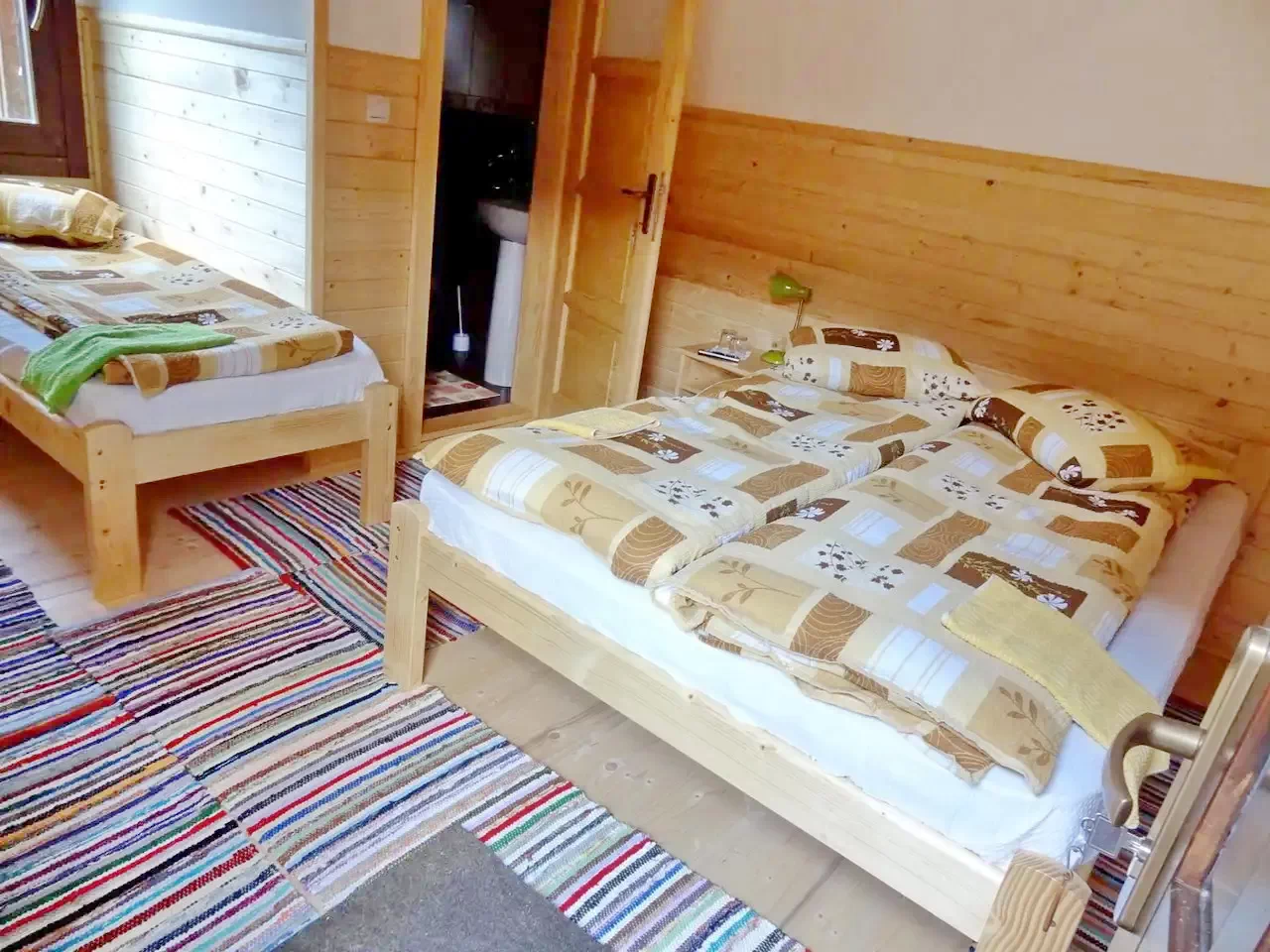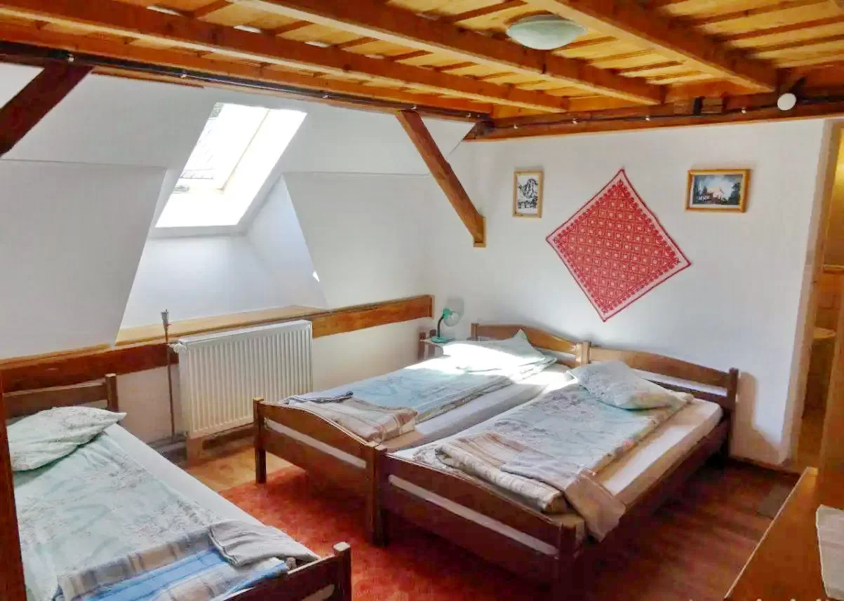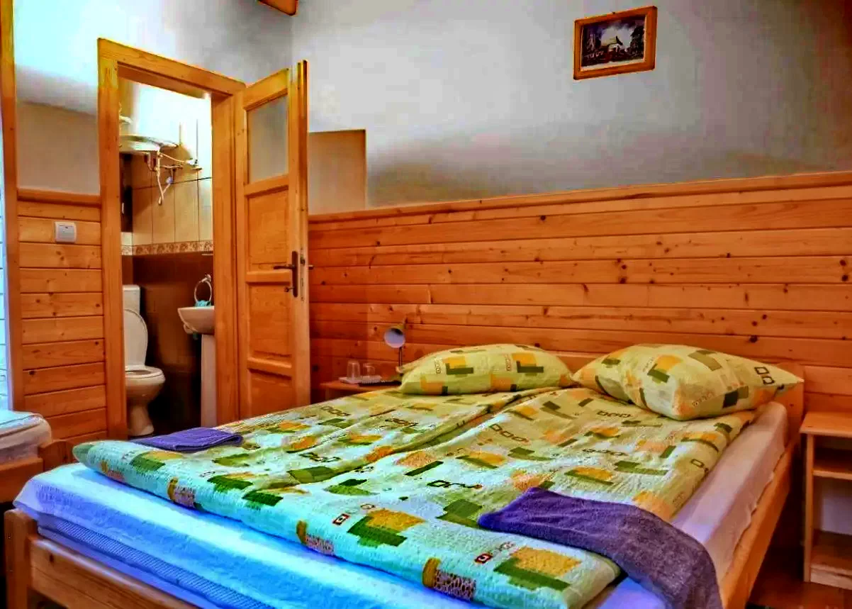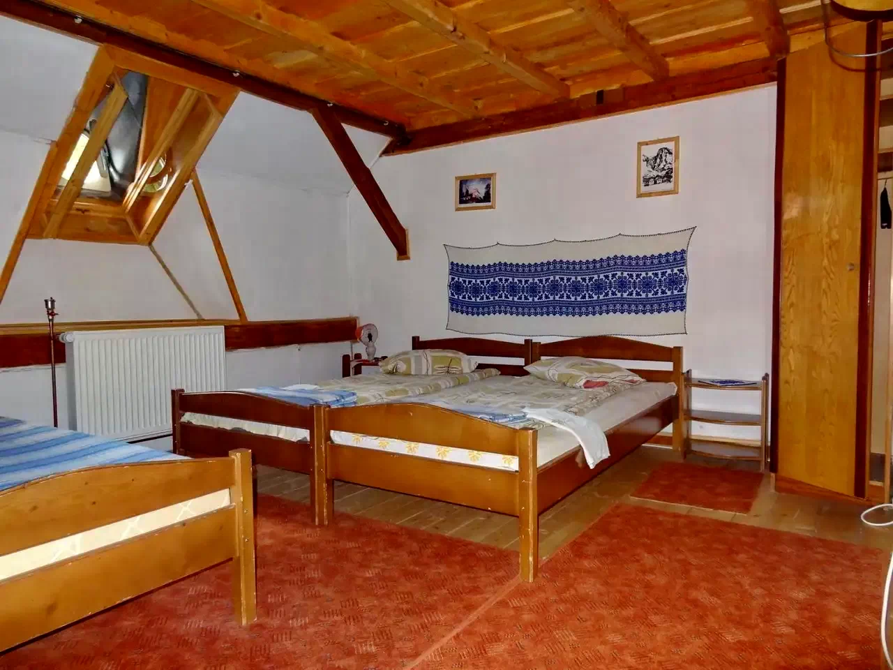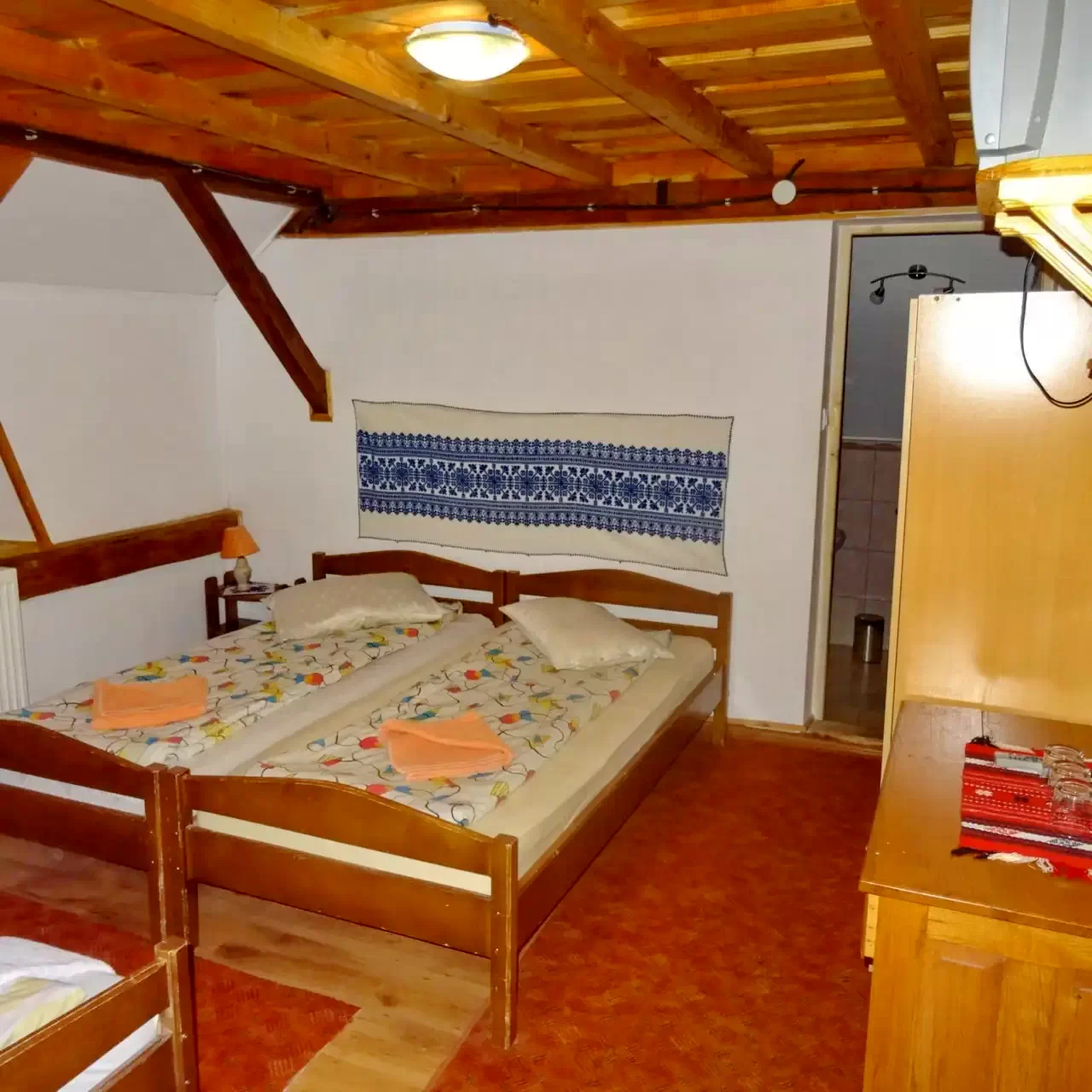 - 1 cameră de patru persoane (pat matrimonial + 2 paturi simple)