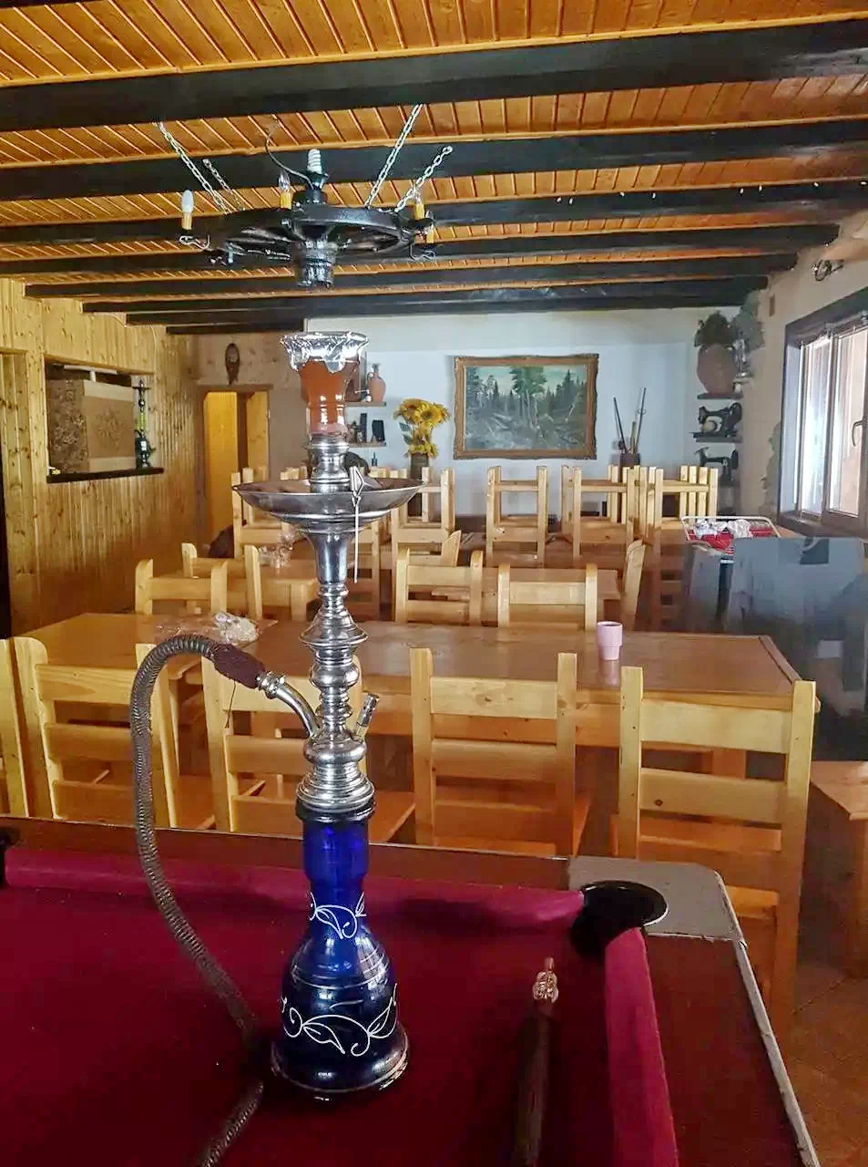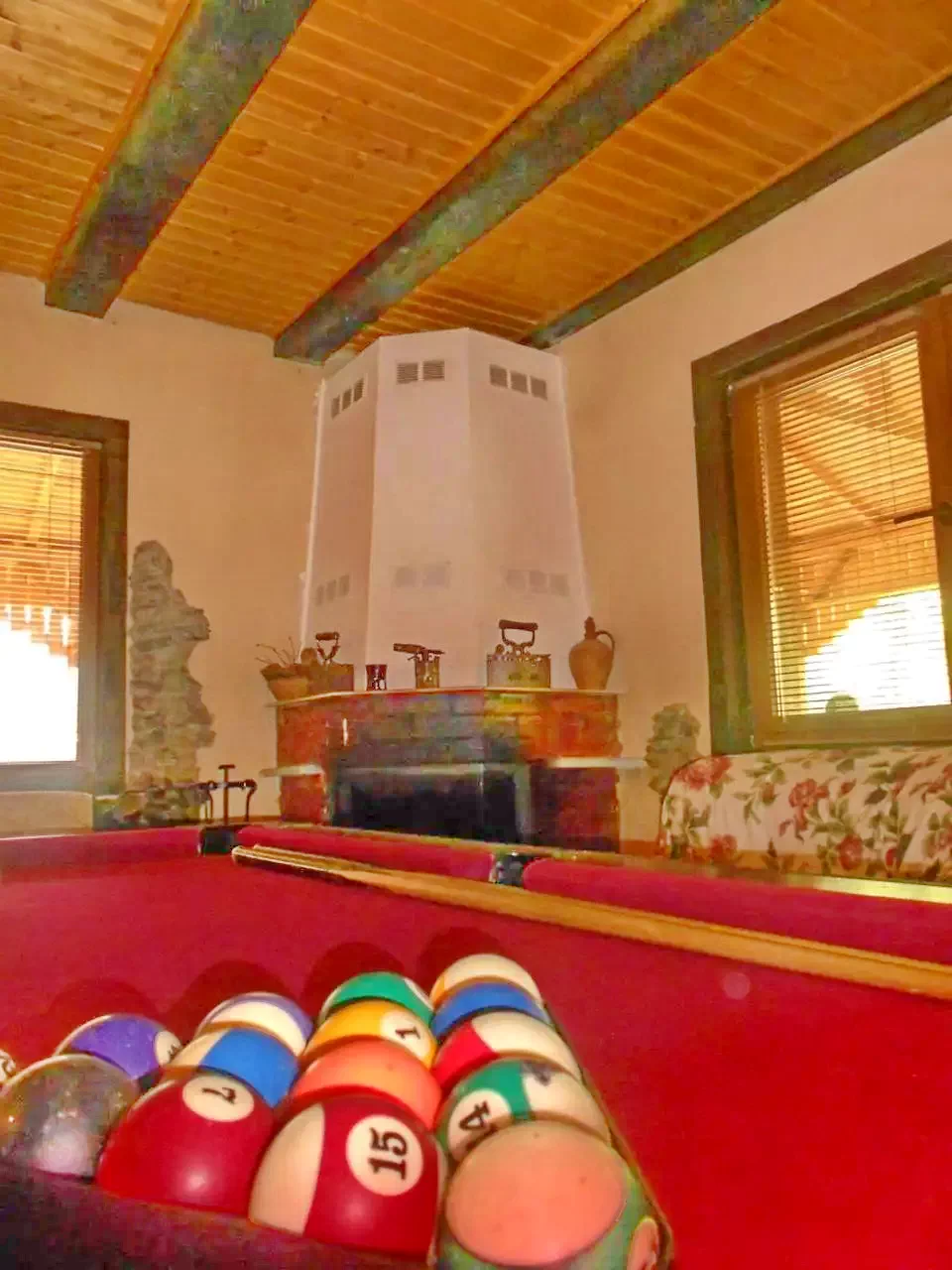 Cabana mai dispune de un living dotat cu LED TV pentru impatimitii de programe Tv prin cablu, biliard, un coltisor de relaxare langa semineu.
