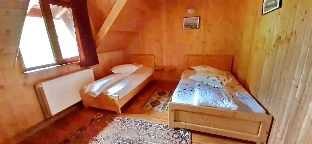 Cabana dispune de 15 spatii de cazare, 12 camere, dintre care 8 cu pat matrimonial, 4 camere Family pentru 3 persoane, o camera mega family cu 4 locuti (pat dublu + pat suprapus), si un apartament (construit in 2020) spatios de 75 mp cu baie, living, bucatarie complet utilata privata si vedere panoramica.