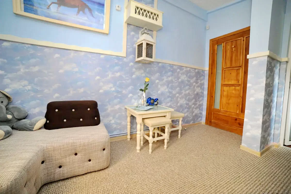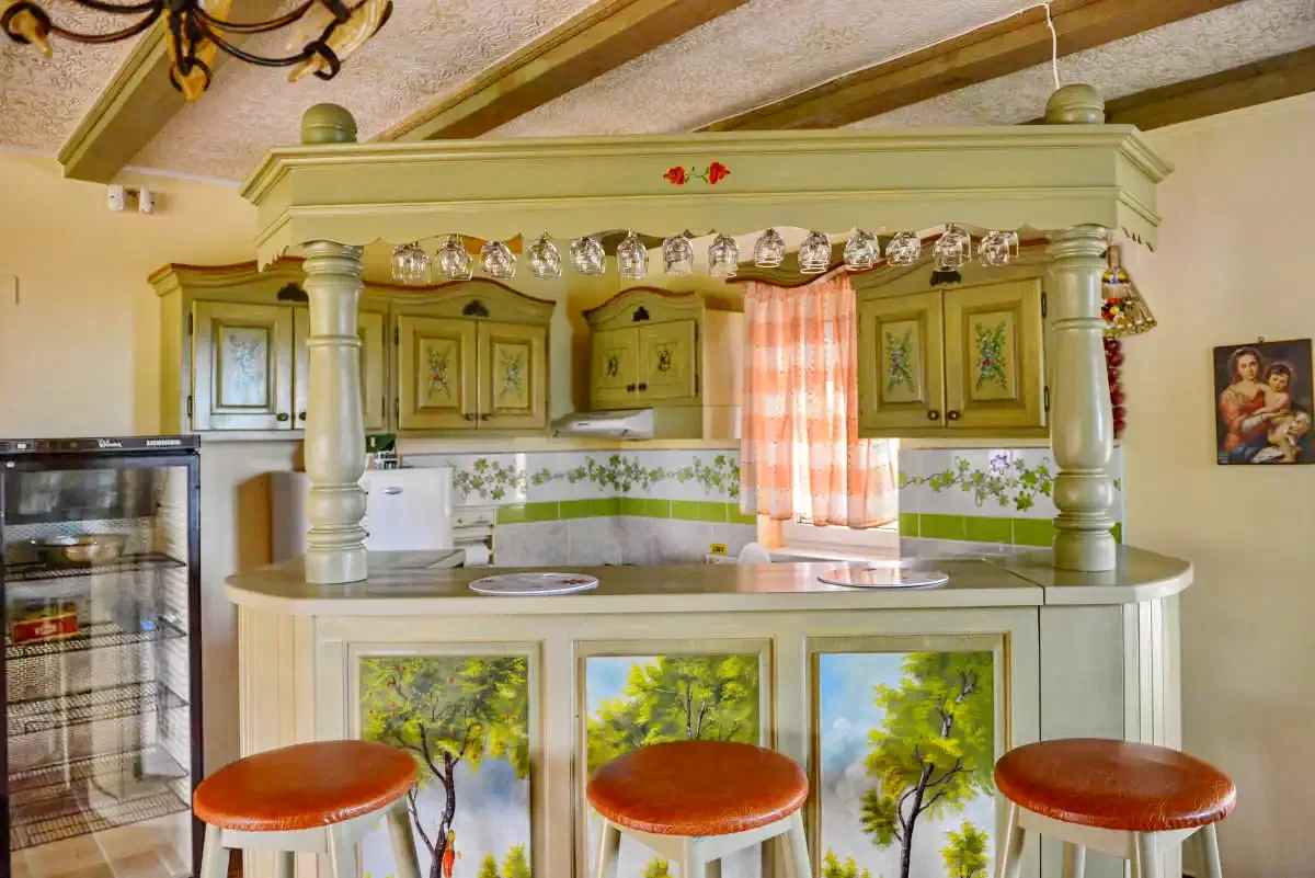 - Mini bucătărie dotata cu aragaz, cuptor cu microunde, frigider si bar,