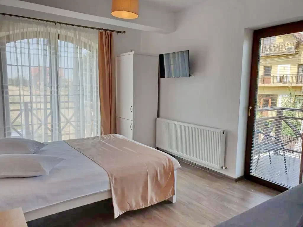 - 1 camera tripla superioara cu balcon - 1 pat dublu mare si 1 pat de o persoana si vedere la gradina