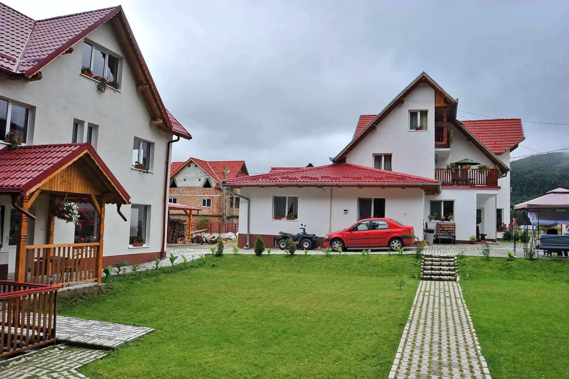 - La primul etaj sunt 4 camere duble, o camera cu 4 locuri și o terasă.