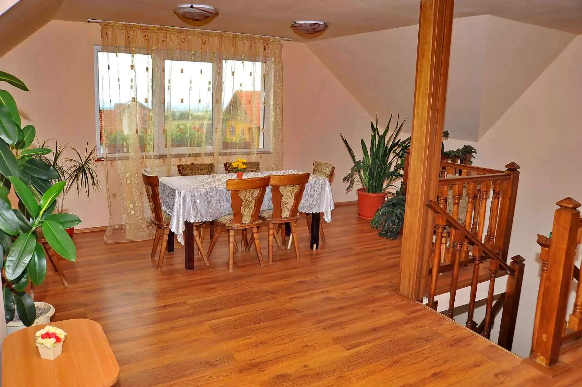 - La mansarda se afla un living spațios, 1 camera pentru 4 persoane, 2 camere pentru 2 persoane si o terasa.