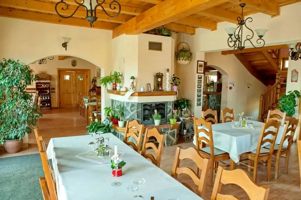 - Restaurantul pensiunii, cu o capacitate de 60 de locuri, oferă o atmosferă primitoare și este deschis între orele 8:00 și 22:00. Meniul îmbină armonios preparatele bucătăriei maghiare și transilvănene.