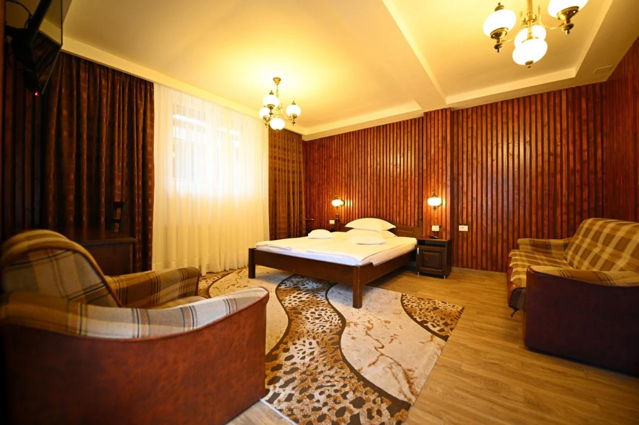 - Pensiunea îmbină cu succes stilurile rustice, clasice și moderne, oferind confort de 3 stele în 37 camere spațioase și modern amenajate.